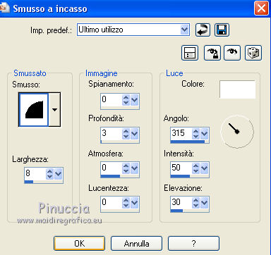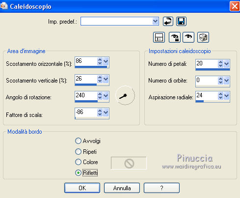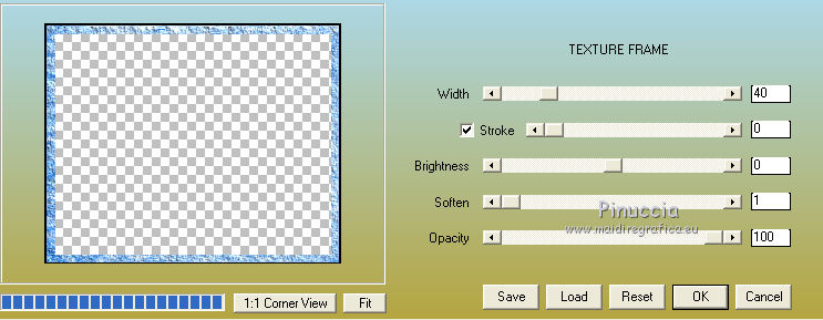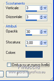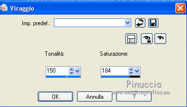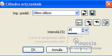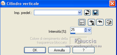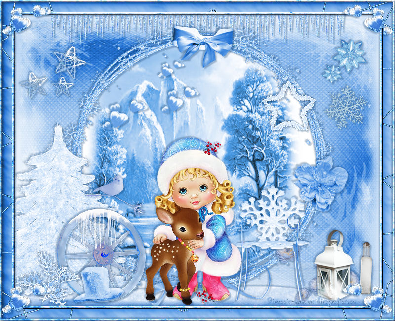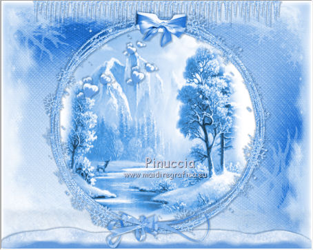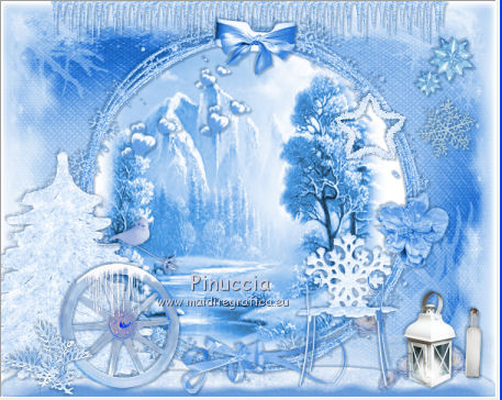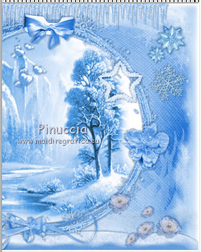 qui puoi trovare qualche risposta ai tuoi dubbi. Se l'argomento che ti interessa non è presente, ti prego di segnalarmelo. Questo tutorial è una creazione di ©Titoune e non può essere copiato su altri siti nè essere offerto per il download. Lo stesso vale per la mia traduzione. Il tutorial è stato creato con PSP X5, ma può essere eseguito anche con le altre versioni di PSP. Secondo la versione utilizzata (anteriore a PSP X) potresti ottenere dei risultati differenti. Dalla versione X4, il comando Immagine>Rifletti è stato sostituito con Immagine>Capovolgi in orizzontale, e il comando Immagine>Capovolgi con Immagine>Capovolgi in verticale. Nelle versioni X5 e X6, le funzioni sono state migliorate rendendo disponibile il menu Oggetti. Con il nuovo X7 sono tornati i comandi Rifletti/Capovolgi, ma con nuove differenze. Vedi la scheda sull'argomento qui Per tradure il tutorial ho usato PSP X. Occorrente: Un tube a scelta. Il resto del materiale qui Il tube utilizzato è di Tatie. Filtri in caso di dubbi, ricorda di consultare la mia sezione filtri qui Adjust - Variations qui AAA Frames - Foto Frame, Texture Frame qui ![]() 1. Apri una nuova immagine trasparente 750 x 600 pixels. Selezione>Seleziona tutto. 2. Apri l'elemento Paper1. Regola>Tonalità e saturazione>Viraggio. ![]() 3. Effetti>Effetti geometrici>Cilindro verticale - 2 volte con i seguenti settaggi. ![]() 4. Effetti>Effetti geometrici>Cilindro orizzontale. ![]() Modifica>Copia. Torna al tuo lavoro e vai a Modifica>Incolla nella selezione. Selezione>Deseleziona. 5. Apri l'elemento Frame3 e vai a Modifica>Copia. Torna al tuo lavoro e vai a Modifica>Incolla come nuovo livello. Non spostarlo. 6. Apri l'elemento snow e vai a Modifica>Copia. Torna al tuo lavoro e vai a Modifica>Incolla come nuovo livello. Spostalo in basso.7. Effetti>Effetti 3D>Sfalsa ombra, colore #053569. ![]() Ripeti l'Effetto Sfalsa ombra, cambiando verticale e orizzontale con -3. Livelli>Disponi>Sposta giù. 8. Attiva il livello della cornice. Attiva lo strumento Bacchetta magica ![]() e clicca al centro della cornice per selezionarla. Selezione>Modifica>Espandi - 3 pixels. 9. Livelli>Nuovo livello raster. Livelli>Disponi>Sposta giù. Apri l'immagine 667qlkse. Immagine>Rifletti. Modifica>Copia. Torna al tuo lavoro e vai a Modifica>Incolla nella selezione. Selezione>Deseleziona. Selezione>Deseleziona. Regola>Tonalità e saturazione>Viraggio, con i settaggi precedenti. 10. Effetti>Plugins>Adjust - Varitaions un clic su Original per annullare eventuali precedenti settaggi memorizzati dal filtro, due clic su Lighter e ok. 11. Attiva il livello della cornice. Effetti>Effetti 3D>Sfalsa ombra, con i settaggi precedenti. 12. Apri l'elemento Icicles e vai a Modifica>Copia. Torna al tuo lavoro e vai a Modifica>Incolla come nuovo livello. Spostalo in alto.Effetti>Effetti 3D>Sfalsa ombra, con i settaggi precedenti. 13. Apri l'elemento HeartScatter e vai a Modifica>Copia. Torna al tuo lavoro e vai a Modifica>Incolla come nuovo livello. Spostalo nella parte superiore sinistra della cornice.Vedi l'esempio finale. Effetti>Effetti 3D>Sfalsa ombra, con i settaggi precedenti. 14. Apri l'elemento Bow2 e vai a Modifica>Copia. Torna al tuo lavoro e vai a Modifica>Incolla come nuovo livello. Regola>Tonalità e saturazione>Viraggio, con i settaggi precedenti. Spostalo nella parte superiore della cornice.Vedi l'esempio finale. Effetti>Effetti 3D>Sfalsa ombra, con i settaggi precedenti. 15. Apri l'elemento Bow3 e vai a Modifica>Copia. Torna al tuo lavoro e vai a Modifica>Incolla come nuovo livello. Regola>Tonalità e saturazione>Viraggio, con i settaggi precedenti. Spostalo nella parte inferiore della cornice.![]() Effetti>Effetti 3D>Sfalsa ombra, con i settaggi precedenti. 16. Apri l'elemento Deco1 e vai a Modifica>Copia. Torna al tuo lavoro e vai a Modifica>Incolla come nuovo livello. Spostalo nella parte superiore destra della cornice.Vedi l'esempio finale. Effetti>Effetti 3D>Sfalsa ombra, con i settaggi precedenti. 17. Apri l'elemento Snowflake2 e vai a Modifica>Copia. Torna al tuo lavoro e vai a Modifica>Incolla come nuovo livello. Spostalo nella parte destra della cornice.Vedi l'esempio finale. Effetti>Effetti 3D>Sfalsa ombra, con i settaggi precedenti. 18. Apri l'elemento Frame2 e vai a Modifica>Copia. Torna al tuo lavoro e vai a Modifica>Incolla come nuovo livello. Regola>Tonalità e saturazione>Viraggio, con i settaggi precedenti. Spostalo a destra.Vedi l'esempio finale. Effetti>Effetti 3D>Sfalsa ombra, con i settaggi precedenti. 19. Apri l'elemento Flower e vai a Modifica>Copia. Torna al tuo lavoro e vai a Modifica>Incolla come nuovo livello. Regola>Tonalità e saturazione>Viraggio, con i settaggi precedenti. Spostalo a destra.Vedi l'esempio finale. Effetti>Effetti 3D>Sfalsa ombra, con i settaggi precedenti. 20. Apri l'elemento FlowerScatter e vai a Modifica>Copia. Torna al tuo lavoro e vai a Modifica>Incolla come nuovo livello. Immagine>Rifletti. Spostalo in basso a destra.![]() Effetti>Effetti 3D>Sfalsa ombra, con i settaggi precedenti. 21. Apri l'elemento Lantern e vai a Modifica>Copia. Torna al tuo lavoro e vai a Modifica>Incolla come nuovo livello. Spostalo in basso a destra.Vedi l'esempio finale. Effetti>Effetti 3D>Sfalsa ombra, con i settaggi precedenti. 22. Apri l'elemento Bottle e vai a Modifica>Copia. Torna al tuo lavoro e vai a Modifica>Incolla come nuovo livello. Spostalo in basso a destra.Vedi l'esempio finale. Effetti>Effetti 3D>Sfalsa ombra, con i settaggi precedenti. 23. Apri l'elemento Chair e vai a Modifica>Copia. Torna al tuo lavoro e vai a Modifica>Incolla come nuovo livello. Immagine>Rifletti. Regola>Tonalità e saturazione>Viraggio, con i settaggi precedenti. Spostalo in basso a destra.![]() Effetti>Effetti 3D>Sfalsa ombra, con i settaggi precedenti. 24. Apri l'elemento Tree e vai a Modifica>Copia. Torna al tuo lavoro e vai a Modifica>Incolla come nuovo livello. Regola>Tonalità e saturazione>Viraggio, con i settaggi precedenti. Spostalo a sinistra.Ved