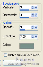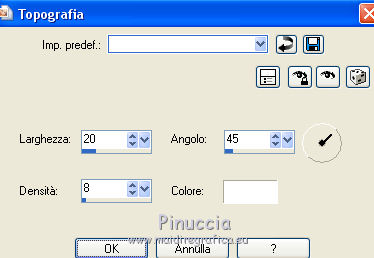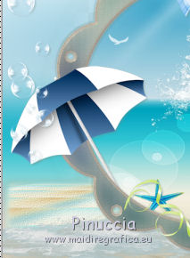 qui puoi trovare qualche risposta ai tuoi dubbi. Se l'argomento che ti interessa non è presente, ti prego di segnalarmelo. Questo tutorial è una creazione di ©Titoune e non può essere copiato su altri siti nè essere offerto per il download. Lo stesso vale per la mia traduzione. Il tutorial è stato creato con Corel17, ma può essere eseguito anche con le altre versioni di PSP. Secondo la versione utilizzata (anteriore a PSP X) potresti ottenere dei risultati differenti. Dalla versione X4, il comando Immagine>Rifletti è stato sostituito con Immagine>Capovolgi in orizzontale, e il comando Immagine>Capovolgi con Immagine>Capovolgi in verticale. Nelle versioni X5 e X6, le funzioni sono state migliorate rendendo disponibile il menu Oggetti. Con il nuovo X7 sono tornati i comandi Rifletti/Capovolgi, ma con nuove differenze. Vedi la scheda sull'argomento qui Per tradurre il tutorial ho usato PSP X. Occorrente: Un tube a scelta. Il resto del materiale qui Filtri in caso di dubbi, ricorda di consultare la mia sezione filtri qui Filters Unlimited 2.0 qui Penta.com - Jeans qui Simple - Top Left Mirror qui I filtri Simple e Penta.com si possono usare da soli o importati in Filters Unlimited (come fare vedi qui) Se un filtro fornito appare con questa icona ![]() 1. Apri una nuova immagine trasparente 750 x 600 pixels. Apri l'elemento TP_Frame_05 e vai a Modifica>Copia. Torna al tuo lavoro e vai a Modifica>Incolla come nuovo livello. 2. Selezione>Seleziona tutto. Selezione>Mobile. Selezione>Immobilizza. Selezione>Modifica>Contrai - 5 pixels. 3. Livelli>Nuovo livello raster. Apri l'elemento TP_Paper_01 e vai a Modifica>Copia. Torna al tuo lavoro e vai a Modifica>Incolla nella selezione. 4. Regola>Sfocatura>Sfocatura gaussiana - raggio 15. ![]() 5. Effetti>Effetti di trama>Trama - seleziona la trama Carta con contrasti. ![]() Selezione>Deseleziona. Livelli>Unisci>Unisci giù. 6. Rimani su questo livello (la cornice). Attiva lo strumento Bacchetta magica ![]() e clicca al centro della cornice per selezionarla. Selezione>Modifica>Espandi - 5 pixels. 7. Livelli>Nuovo livello raster. Livelli>Disponi>Sposta giù. Apri l'immagine Beach Sea Summer Vector Illustration e vai a Modifica>Copia. Modifica>Copia. Torna al tuo lavoro e vai a Modifica>Incolla nella selezione. Immagine>Rifletti. 8. Selezione>Inverti. Attiva il livello Raster 1. Modifica>Incolla nella selezione (l'immagine è ancora in memoria). Selezione>Deseleziona. 10. Regola>Sfocatura>Sfocatura gaussiana - raggio 35. ![]() 11. Apri l'elemento sand e vai a Modifica>Copia. Torna al tuo lavoro e vai a Modifica>Incolla come nuovo livello. Spostalo in basso.(dalla versione Corel15: Oggetti>Allinea>Inferiore). 12. Apri l'elemento TP_Beach_01 e vai a Modifica>Copia. Torna al tuo lavoro e vai a Modifica>Incolla come nuovo livello. Spostalo in basso.![]() 13. Effetti>Effetti 3D>Sfalsa ombra, colore #78918a. ![]() Ripeti l'Effetto Sfalsa ombra, cambiando verticale e orizzontale con -3. 14. Attiva il livello della cornice. ì Effetti>Effetti 3D>Sfalsa ombra, con i settaggi precedenti. 15. Apri l'elemento TP_WaterSplash_01 e vai a Modifica>Copia. Torna al tuo lavoro e vai a Modifica>Incolla come nuovo livello. Spostalo nel paesaggio.Vedi l'esempio finale. Effetti>Effetti 3D>Sfalsa ombra, colore #78918a. ![]() 16. Apri l'elemento TP_Bow_03 e vai a Modifica>Copia. Torna al tuo lavoro e vai a Modifica>Incolla come nuovo livello. Spostalo nella parte superiore della cornice.Vedi l'esempio finale. Effetti>Effetti 3D>Sfalsa ombra, con i settaggi precedenti. 17. Apri l'elemento TRPalms e vai a Modifica>Copia. Torna al tuo lavoro e vai a Modifica>Incolla come nuovo livello. Spostalo in alto a destra.Vedi l'esempio finale. Effetti>Effetti 3D>Sfalsa ombra, con i settaggi precedenti. 18. Apri l'elemento TP_NetDeco_01 e vai a Modifica>Copia. Torna al tuo lavoro e vai a Modifica>Incolla come nuovo livello. Spostalo nella parte destra della cornice.Vedi l'esempio finale. Effetti>Effetti 3D>Sfalsa ombra, con i settaggi precedenti. 19. Apri l'elemento TP_SeaBlossom_04 e vai a Modifica>Copia. Torna al tuo lavoro e vai a Modifica>Incolla come nuovo livello. Spostalo nella parte inferiore destra della cornice.Vedi l'esempio finale. Effetti>Effetti 3D>Sfalsa ombra, con i settaggi precedenti. 20. Apri l'elemento TP_Shell_05 e vai a Modifica>Copia. Torna al tuo lavoro e vai a Modifica>Incolla come nuovo livello. Spostalo nella parte inferiore destra della cornice.Vedi l'esempio finale. Effetti>Effetti 3D>Sfalsa ombra, con i settaggi precedenti. 21. Apri l'elemento TP_SeaPlant_01 e vai a Modifica>Copia. Torna al tuo lavoro e vai a Modifica>Incolla come nuovo livello. Spostalo nella parte inferiore della cornice.Vedi l'esempio finale. Effetti>Effetti 3D>Sfalsa ombra, con i settaggi precedenti. 22. Apri l'elemento TP_LeafDeco_02 e vai a Modifica>Copia. Torna al tuo lavoro e vai a Modifica>Incolla come nuovo livello. Spostalo nella parte inferiore della cornice.Vedi l'esempio finale. Effetti>Effetti 3D>Sfalsa ombra, con i settaggi precedenti. 23. Apri l'elemento TP_Ribbon_02 e vai a Modifica>Copia. Torna al tuo lavoro e vai a Modifica>Incolla come nuovo livello. Spostalo nella parte inferiore della cornice.Vedi l'esempio finale. Effetti>Effetti 3D>Sfalsa ombra, con i settaggi precedenti. 24. Apri l'elemento TP_Bubbles_02 e vai a Modifica>Copia. Torna al tuo lavoro e vai a Modifica>Incolla come nuovo livello. Spostalo nella parte sinistra.Vedi l'esempio finale. Effetti>Effetti 3D>Sfalsa ombra, con i settaggi precedenti. 25. Apri l'elemento TP_Brella_01 e vai a Modifica>Copia. Torna al tuo lavoro e vai a Modifica>Incolla come nuovo livello. Spostalo nella parte inferiore sinistra della cornice.Vedi l'esempio finale. Porta questo livello sotto il livello della cornice. Livelli>Duplica. Porta il livello della copia sopra il livello della cornice. 26. Attiva lo strumento Gomma ![]() e cancella la parte dell'ombrello che deborda sulla cornice. ![]() Attiva il livello originale. Effetti>E
