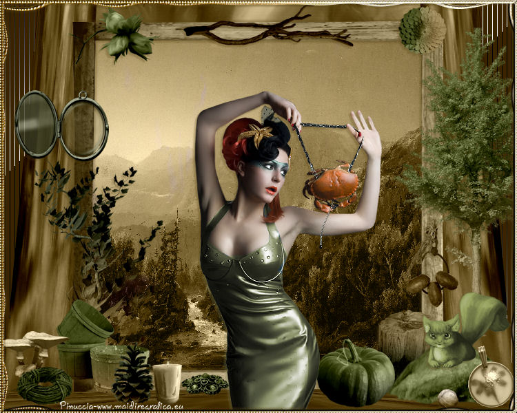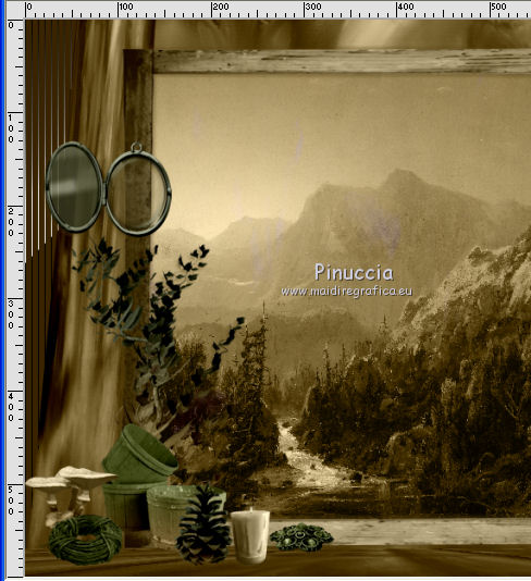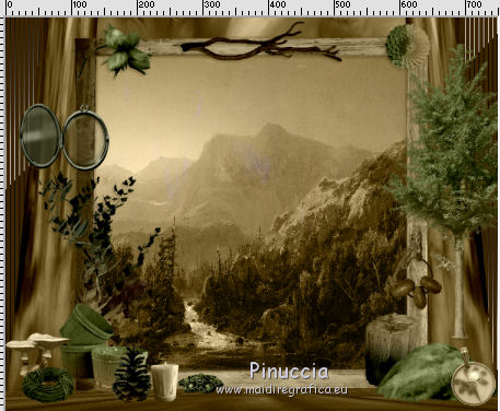 e clicca nella parti indicate per selezionarle.![]() 8. Effetti>Plugins>Tramages - Tow the line, con i settaggi standard. ![]() Selezione>Deseleziona. 9. Apri l'elemento Frame3 e vai a Modifica>Copia. Torna al tuo lavoro e vai a Modifica>Incolla come nuovo livello. Non spostarlo. 10. Attiva lo strumento Bacchetta magica ![]() e clicca al centro della cornice per selezionarla. Selezione>Modifica>Espandi - 3 pixels. 11. Livelli>Nuovo livello raster. Livelli>Disponi>Sposta giù. 12. Activer l'image Autumn_Landscape-William_Louis_Sonntag e vai a Modifica>Copia. Torna al tuo lavoro e vai a Modifica>Incolla nella selezione. Selezione>Deseleziona. Cambia la modalità di miscelatura di questo livello in Luminanza (esistente). 13. Attiva il livello della cornice. Effetti>Effetti 3D>Sfalsa ombra, colore #554010. ![]() Ripeti l'Effetto Sfalsa ombra, ma verticale e orizzontale -3/3. 14. Attiva il livello inferiore. Selezione personalizzata ![]() ![]() Selezione>Innalza selezione a livello. Livelli>Disponi>Porta in alto. 15. Effetti>Plugins>Mura's Meister - Perspective tiling. ![]() Selezione>Deseleziona. 16. Apri l'elemento Branch e vai a Modifica>Copia. Torna al tuo lavoro e vai a Modifica>Incolla come nuovo livello. Spostalo in basso a sinistra.Effetti>Effetti 3D>Sfalsa ombra, colore #554010. ![]() 17. Apri l'elemento Buckets e vai a Modifica>Copia. Torna al tuo lavoro e vai a Modifica>Incolla come nuovo livello. Spostalo in basso a sinistra.Effetti>Effetti 3D>Sfalsa ombra, con i settaggi precedenti. 18. Apri l'elemento Mushrooms e vai a Modifica>Copia. Torna al tuo lavoro e vai a Modifica>Incolla come nuovo livello. Spostalo in basso a sinistra.Effetti>Effetti 3D>Sfalsa ombra, con i settaggi precedenti. 19. Apri l'elemento Nest e vai a Modifica>Copia. Torna al tuo lavoro e vai a Modifica>Incolla come nuovo livello. Spostalo in basso a sinistra.Effetti>Effetti 3D>Sfalsa ombra, con i settaggi precedenti. 20. Apri l'elemento Pinecone e vai a Modifica>Copia. Torna al tuo lavoro e vai a Modifica>Incolla come nuovo livello. Spostalo in basso a sinistra.Effetti>Effetti 3D>Sfalsa ombra, con i settaggi precedenti. 21. Apri l'elemento Candle e vai a Modifica>Copia. Torna al tuo lavoro e vai a Modifica>Incolla come nuovo livello. Spostalo in basso a sinistra.Effetti>Effetti 3D>Sfalsa ombra, con i settaggi precedenti. 22. Apri l'elemento Charm1 e vai a Modifica>Copia. Torna al tuo lavoro e vai a Modifica>Incolla come nuovo livello. Spostalo in basso a sinistra.Effetti>Effetti 3D>Sfalsa ombra, con i settaggi precedenti. 23. Apri l'elemento Locket e vai a Modifica>Copia. Torna al tuo lavoro e vai a Modifica>Incolla come nuovo livello. Spostalo nella parte sinistra della cornice.![]() Effetti>Effetti 3D>Sfalsa ombra, con i settaggi precedenti. 24. Apri l'elemento Flower3 e vai a Modifica>Copia. Torna al tuo lavoro e vai a Modifica>Incolla come nuovo livello. Spostalo nella parte superiore sinistra della cornice.Effetti>Effetti 3D>Sfalsa ombra, con i settaggi precedenti. 25. Apri l'elemento Stick e vai a Modifica>Copia. Torna al tuo lavoro e vai a Modifica>Incolla come nuovo livello. Spostalo nella parte superiore della cornice.Effetti>Effetti 3D>Sfalsa ombra, con i settaggi precedenti. 26. Apri l'elemento Flower2 e vai a Modifica>Copia. Torna al tuo lavoro e vai a Modifica>Incolla come nuovo livello. Spostalo