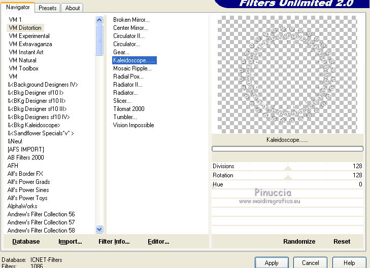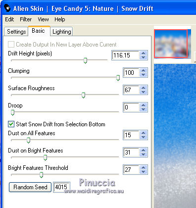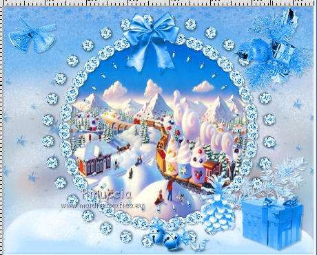 qui puoi trovare qualche risposta ai tuoi dubbi. Se l'argomento che ti interessa non è presente, ti prego di segnalarmelo. Questo tutorial è una creazione di ©Titoune e non può essere copiato su altri siti nè essere offerto per il download. Lo stesso vale per la mia traduzione. Il tutorial è stato creato con Corel17, ma può essere eseguito anche con le altre versioni di PSP. Secondo la versione utilizzata (anteriore a PSP X) potresti ottenere dei risultati differenti. Dalla versione X4, il comando Immagine>Rifletti è stato sostituito con Immagine>Capovolgi in orizzontale, e il comando Immagine>Capovolgi con Immagine>Capovolgi in verticale. Nelle versioni X5 e X6, le funzioni sono state migliorate rendendo disponibile il menu Oggetti. Con il nuovo X7 sono tornati i comandi Rifletti/Capovolgi, ma con nuove differenze. Vedi la scheda sull'argomento qui Per tradurre il tutorial ho usato PSP X. Occorrente: Un tube a scelta. Il resto del materiale qui Il tube utilizzato è di Chouchou86'. Filtri in caso di dubbi, ricorda di consultare la mia sezione filtri qui Filters Unlimited 2.0 qui VM Distortion - Kaleidoscope qui Alien skin Eye Candy 5 Nature - Snowdrift qui ![]() 1. Per la realizzazione di questo tutorial alcuni elementi nello zip sono stati colorizzati. Converrà colorizzarli secondo i vostri colori. Per l'esempio: Regola>Tonalità e saturazione>Viraggio. ![]() 2. Apri una nuova immagine trasparente 750 x 600 pixels. Selezione>Seleziona tutto. 3. Apri l'elemento cajoline_bluedreamswinter_freebie_pap1, e vai a Modifica>Copia. Torna al tuo lavoro e vai a Modifica>Incolla nella selezione. Regola>Tonalità e saturazione>Viraggio, con i settaggi precedenti. Mantieni selezionato. 3. Livelli>Nuovo livello raster. Apri l'immagine 0_a9349_e4b1d19f_XXL, e vai a Modifica>Copia. Torna al tuo lavoro e vai a Modifica>Incolla nella selezione. Selezione>Deseleziona. 4. Regola>Sfocatura>Sfocatura gaussiana - raggio 25. ![]() 5. Effetti>Plugins>Alien Skin Eye Candy 5 Nature - Snowdrift. ![]() Abbassa l'opacità di questo livello al 55%. 6. Apri l'elemento cajoline_bluedreamswinter_freebie_11, e vai a Modifica>Copia. e vai a Modifica>Copia. Torna al tuo lavoro e vai a Modifica>Incolla come nuovo livello. Non spostarlo. 7. Effetti>Effetti 3D>Sfalsa ombra, colore #1a435b. ![]() 8. Apri l'elemento cajoline_bluedreamswinter_freebie_12 e vai a Modifica>Copia. Torna al tuo lavoro e vai a Modifica>Incolla come nuovo livello. Effetti>Plugins>Filters Unlimited 2.0 - VM Distortion - Kaleidoscope. ![]() 9. Immagine>Ridimensiona, al 110%, tutti i livelli non selezionato. Regola>Tonalità e saturazione>Viraggio, con i settaggi precedenti. 10. Attiva lo strumento Bacchetta magica ![]() e clicca al centro della cornice per selezionarla. 10. A l'aide de la baguette magique cliquer au centre du frame Selezione>Modifica>Espandi - 3 pixels. Livelli>Nuovo livello raster. Livelli>Disponi>Sposta giù. 11. Attiva nuovamente l'immagine 0_a9349_e4b1d19f_XXL e vai a Modifica>Copia. Torna al tuo lavoro e vai a Modifica>Incolla nella selezione. Selezione>Deseleziona. 12. Attiva il livello della cornice. Effetti>Effetti 3D>Sfalsa ombra, con i settaggi precedenti. 13. Apri l'elemento snow e vai a Modifica>Copia. Torna al tuo lavoro e vai a Modifica>Incolla come nuovo livello. Spostalo in basso.Vedi l'esempio finale. Porta questo livello sotto il livello del paesaggio. Regola>Tonalità e saturazione>Viraggio, con i settaggi precedenti. Effetti>Effetti 3D>Sfalsa ombra, con i settaggi precedenti. 14. Attiva nuovamente il livello superiore. Apri l'elemento cajoline_bluedreamswinter_freebie_5 e vai a Modifica>Copia. Torna al tuo lavoro e vai a Modifica>Incolla come nuovo livello. Regola>Tonalità e saturazione>Viraggio, con i settaggi precedenti. Effetti>Effetti 3D>Sfalsa ombra, con i settaggi precedenti. Spostalo in alto a sinistra.Vedi l'esempio finale. 15. Apri l'elemento cajoline_bluedreamswinter_freebie_13 e vai a Modifica>Copia. Torna al tuo lavoro e vai a Modifica>Incolla come nuovo livello. Regola>Tonalità e saturazione>Viraggio, con i settaggi precedenti. Effetti>Effetti 3D>Sfalsa ombra, con i settaggi precedenti. Spostalo nella parte superiore della cornice.Vedi l'esempio finale. 16. Apri l'elemento cajoline_bluedreamswinter_freebie_7 e vai a Modifica>Copia. Torna al tuo lavoro e vai a Modifica>Incolla come nuovo livello. Regola>Tonalità e saturazione>Viraggio, con i settaggi precedenti. Effetti>Effetti 3D>Sfalsa ombra, con i settaggi precedenti. Spostalo in alto a destra.![]() 17. Apri l'elemento cajoline_bluedreamswinter_freebie_20 e vai a Modifica>Copia. Torna al tuo lavoro e vai a Modifica>Incolla come nuovo livello. Regola>Tonalità e saturazione>Viraggio, con i settaggi precedenti. Effetti>Effetti 3D>Sfalsa ombra, con i settaggi precedenti. Spostalo in basso a destra.Vedi l'esempio finale. 18. Apri l'elemento cajoline_bluedreamswinter_freebie_21 e vai a Modifica>Copia. Torna al tuo lavoro e vai a Modifica>Incolla come nuovo livello. Regola>Tonalità e saturazione>Viraggio, con i settaggi precedenti. Effetti>Effetti 3D>Sfalsa ombra, con i settaggi precedenti. Spostalo in basso a destra.Vedi l'esempio finale. 19. Apri l'elemento cajoline_bluedreamswinter_freebie_18 e vai a Modifica>Copia. Torna al tuo lavoro e vai a Modifica>Incolla come nuovo livello. Regola>Tonalità e saturazione>Viraggio, con i settaggi precedenti. Effetti>Effetti 3D>Sfalsa ombra, con i settaggi precedenti. Spostalo in basso a destra.Vedi l'esempio finale. 20. Apri l'elemento cajoline_bluedreamswinter_freebie_6 e vai a Modifica>Copia. Torna al tuo lavoro e vai a Modifica>Incolla come nuovo livello. Regola>Tonalità e saturazione>Viraggio, con i settaggi precedenti. Effetti>Effetti 3D>Sfalsa ombra, con i settaggi precedenti. Spostalo nella parte inferiore.![]() 21. Apri l'elemento cajoline_bluedreamswinter_freebie_9 e vai a Modifica>Copia. Torna al tuo lavoro e vai a Modifica>Incolla come nuovo livello. Regola>Tonalità e saturazione>Viraggio, co