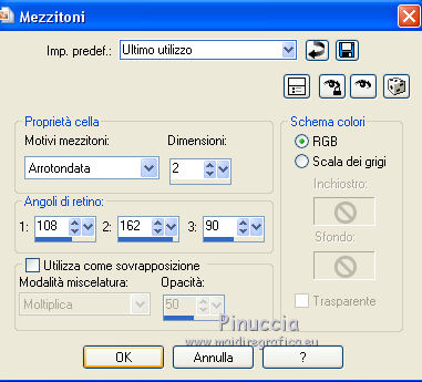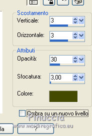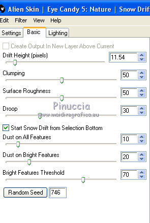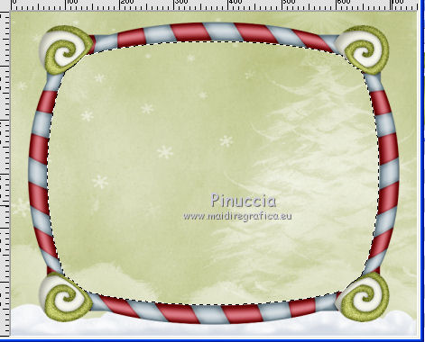 qui puoi trovare qualche risposta ai tuoi dubbi. Se l'argomento che ti interessa non è presente, ti prego di segnalarmelo. Questo tutorial è una creazione di ©Titoune e non può essere copiato su altri siti nè essere offerto per il download. Lo stesso vale per la mia traduzione. Il tutorial è stato creato con Corel17, ma può essere eseguito anche con le altre versioni di PSP. Secondo la versione utilizzata (anteriore a PSP X) potresti ottenere dei risultati differenti. Dalla versione X4, il comando Immagine>Rifletti è stato sostituito con Immagine>Capovolgi in orizzontale, e il comando Immagine>Capovolgi con Immagine>Capovolgi in verticale. Nelle versioni X5 e X6, le funzioni sono state migliorate rendendo disponibile il menu Oggetti. Con il nuovo X7 sono tornati i comandi Rifletti/Capovolgi, ma con nuove differenze. Vedi la scheda sull'argomento qui Per tradurre il tutorial ho usato PSP X. Occorrente: Un tube a scelta. Il resto del materiale qui Filtri in caso di dubbi, ricorda di consultare la mia sezione filtri qui Alien skin Eye Candy 5 Nature - Snowdrift qui ![]() 1. Apri una nuova immagine trasparente 750 x 600 pixels. Selezione>Seleziona tutto. 2. Apri l'elemento Paper7, e vai a Modifica>Copia. Torna al tuo lavoro e vai a Modifica>Incolla nella selezione. Selezione>Deseleziona. 3. Apri l'elemento CM_Snow e vai a Modifica>Copia. Torna al tuo lavoro e vai a Modifica>Incolla come nuovo livello. Spostalo in basso.4. Apri l'elemento CM_Frame e vai a Modifica>Copia. Torna al tuo lavoro e vai a Modifica>Incolla come nuovo livello. 5. Effetti>Effetti geometrici>Cilindro verticale. ![]() 6. Effetti>Effetti geometrici>Sfera. ![]() Non spostarlo. 7. Attiva lo strumento Bacchetta magica ![]() e clicca al centro della cornice per selezionarla. ![]() Selezione>Modifica>Espandi - 5 pixels. 8. Livelli>Nuovo livello raster. Livelli>Disponi>Sposta giù. 9. Apri l'immagine un_soir_d_hiver, e vai a Modifica>Copia. Torna al tuo lavoro e vai a Modifica>Incolla nella selezione. Selezione>Deseleziona. 10. Apri l'elemento CM_Sparkles e vai a Modifica>Copia. Torna al tuo lavoro e vai a Modifica>Incolla come nuovo livello. Non spostarlo. 11. Attiva nuovamente il livello della cornice. Effetti>Plugins>Alien Skin Eye Candy 5 Nature - Snowdrift. ![]() 12. Effetti>Effetti 3D>Sfalsa ombra, colore #444b01. ![]() Ripeti l'Effetto Sfalsa ombra, cambiando verticale e orizzontale con -3. Ripeti l'Effetto Sfalsa ombra sul livello della neve. 13. Attiva nuovamente il livello superiore. Apri l'elemento CM_Swag e vai a Modifica>Copia. Torna al tuo lavoro e vai a Modifica>Incolla come nuovo livello. Spostalo nella parte superiore della cornice.Vedi l'esempio finale. Effetti>Effetti 3D>Sfalsa ombra, colore #444b01. ![]() 14. Apri l'elemento CM_Holly e vai a Modifica>Copia. Torna al tuo lavoro e vai a Modifica>Incolla come nuovo livello. Spostalo nella parte superiore sinistra della cornice.Vedi l'esempio finale. Effetti>Effetti 3D>Sfalsa ombra, con i settaggi precedenti. 15. Apri l'elemento CM_Bow2 e vai a Modifica>Copia. Torna al tuo lavoro e vai a Modifica>Incolla come nuovo livello. Spostalo nella parte superiore destra della cornice.Vedi l'esempio finale. Effetti>Effetti 3D>Sfalsa ombra, con i settaggi precedenti. 16. Apri l'elemento CM_Hanging Balls e vai a Modifica>Copia. Torna al tuo lavoro e vai a Modifica>Incolla come nuovo livello. Spostalo nella parte destra della cornice.Vedi l'esempio finale. Effetti>Effetti 3D>Sfalsa ombra, con i settaggi precedenti. 17. Apri l'elemento CM_Christmas Tree e vai a Modifica>Copia. Torna al tuo lavoro e vai a Modifica>Incolla come nuovo livello. Spostalo nella parte inferiore destra della cornice.Vedi l'esempio finale. Effetti>Effetti 3D>Sfalsa ombra, con i settaggi precedenti. 18. Apri l'elemento CM_Santas Bag e vai a Modifica>Copia. Torna al tuo lavoro e vai a Modifica>Incolla come nuovo livello. Spostalo nella parte inferiore destra della cornice.Vedi l'esempio finale. Effetti>Effetti 3D>Sfalsa ombra, con i settaggi precedenti. 19. Apri l'elemento CM_Gifts e vai a Modifica>Copia. Torna al tuo lavoro e vai a Modifica>Incolla come nuovo livello. Spostalo nella parte inferiore destra della cornice.Vedi l'esempio finale. Effetti>Effetti 3D>Sfalsa ombra, con i settaggi precedenti. 20. Apri l'elemento CM_Kitty e vai a Modifica>Copia. Torna al tuo lavoro e vai a Modifica>Incolla come nuovo livello. Spostalo nella parte inferiore della cornice.Vedi l'esempio finale. Effetti>Effetti 3D>Sfalsa ombra, con i settaggi precedenti. 21. Apri l'elemento CM_Candy Canes e vai a Modifica>Copia. Torna al tuo lavoro e vai a Modifica>Incolla come nuovo livello. Spostalo nella parte inferiore sinistra della cornice.Vedi l'esempio finale. Effetti>Effetti 3D>Sfalsa ombra, con i settaggi precedenti. 22. Apri l'elemento CM_Scroll e vai a Modifica>Copia. Torna al tuo lavoro e vai a Modifica>Incolla come nuovo livello. Spostalo nella parte inferiore sinistra della cornice.Vedi l'esempio finale. Effetti>Effetti 3D>Sfalsa ombra, con i settaggi precedenti. 23. Apri l'elemento CM_Stocking e vai a Modifica>Copia. Torna al tuo lavoro e vai a Modifica>Incolla come nuovo livello. Spostalo nella parte sinistra della cornice.Vedi l'esempio finale. Effetti>Effetti 3D>Sfalsa ombra, con i settaggi precedenti. 24. Apri l'elemento wordart e vai a Modifica>Copia. Torna al tuo lavoro e vai a Modifica>Incolla come nuovo livello. Spostalo nella parte sinistra della cornice.Vedi l'esempio finale. Effetti>Effetti 3D>Sfalsa ombra, con i settaggi precedenti. Apri il tuo tube e vai a Modifica>Copia. Torna al tuo lavoro e vai a Modifica>Incolla come nuovo livello. Immagine>Ridimensiona, se e quanto necessario, tutti i livelli non selezionato. Spostalo dove preferisci o vedi il mio esempio.Effetti>Effetti 3D>Sfalsa ombra, con i settaggi precedenti. 25. Assicurati di essere posizionato sul livello superiore. Livelli>Nuovo livello raster. Selezione>Seleziona tutto. 26. Apri l'elemento Paper6 e vai a Modifica>Copia. Torna al tu