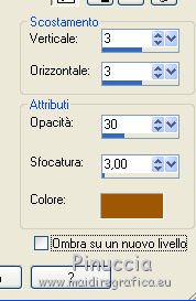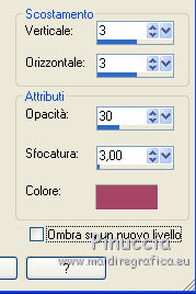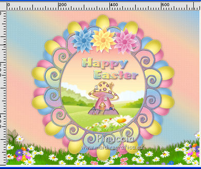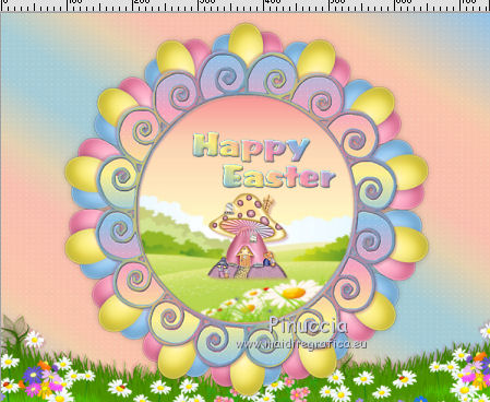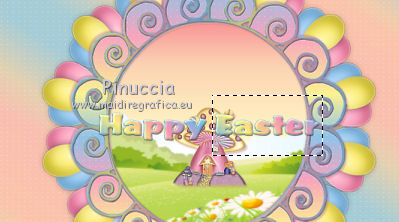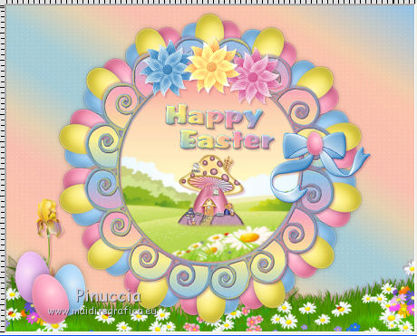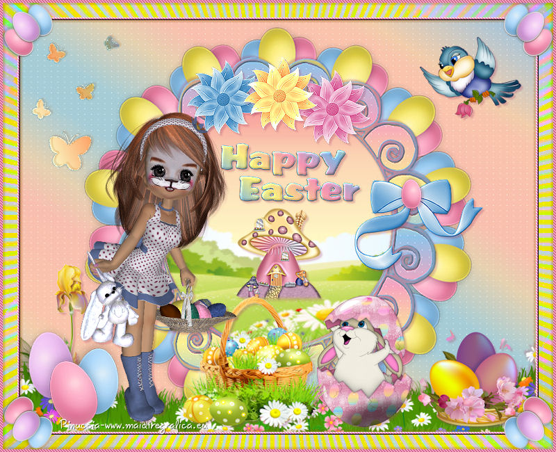 qui puoi trovare qualche risposta ai tuoi dubbi. Se l'argomento che ti interessa non è presente, ti prego di segnalarmelo. Questo tutorial è una creazione di ©Titoune e non può essere copiato su altri siti nè essere offerto per il download. Lo stesso vale per la mia traduzione. Il tutorial è stato creato con Corel17, ma può essere eseguito anche con le altre versioni di PSP. Secondo la versione utilizzata (anteriore a PSP X) potresti ottenere dei risultati differenti. Dalla versione X4, il comando Immagine>Rifletti è stato sostituito con Immagine>Capovolgi in orizzontale, e il comando Immagine>Capovolgi con Immagine>Capovolgi in verticale. Nelle versioni X5 e X6, le funzioni sono state migliorate rendendo disponibile il menu Oggetti. Con il nuovo X7 sono tornati i comandi Rifletti/Capovolgi, ma con nuove differenze. Vedi la scheda sull'argomento qui Per tradurre il tutorial ho usato PSP X. Occorrente: Un tube a scelta. Il resto del materiale qui Il tube usato è di Elizabeth. Filtri: in caso di dubbi, ricorda di consultare la mia sezione filtri qui Filters Unlimited 2.0 qui Andrew's Filter 55 - A Bit of a Curve There qui I filtri Andrews si possono usare da soli o importati in Filters Unlimited (come fare vedi qui) Se un filtro fornito appare con questa icona ![]() 1. Ouvrir une image transparente 750 x 600 Pixels Selezione>Seleziona tutto. 2. Apri lo scrapkit easterscrapkit. Tutti i livelli sono chiusi per alleggerire l'immagine. Attiva e apri i livelli quando ti sarà chiesto, prima di copiarli. 3. Attiva il livello "background paper" e vai a Modifica>Copia. Torna al tuo lavoro e vai a Modifica>Incolla nella selezione. Selezione>Deseleziona. 4. Apri l'elemento Grass_Ground_with_Flowers_PNG_Clipart e vai a Modifica>Copia. Torna al tuo lavoro e vai a Modifica>Incolla come nuovo livello. Spostalo in basso.5. Effetti>Effetti 3D>Sfalsa ombra, colore #a64466. ![]() Ripeti l'Effetto Sfalsa ombra, ma verticale e orizzontale -3. 6. Attiva nuovamente "easterscrapkit" Attiva il livello "circleofeggs" e vai a Modifica>Copia. Torna al tuo lavoro e vai a Modifica>Incolla come nuovo livello. 7. Immagine>Ridimensiona, al 110%, tutti i livelli non selezionato. Regola>Messa a fuoco>Metti a fuoco. Non spostarlo. Niente Sfalsa ombra. 8. Attiva "easterscrapkit". Attiva il livello "swirls" e vai a Modifica>Copia. Torna al tuo lavoro e vai a Modifica>Incolla come nuovo livello. 9. Immagine>Ridimensiona, al 110%, tutti i livelli non selezionato. Regola>Messa a fuoco>Metti a fuoco. Non spostarlo. Effetti>Effetti 3D>Sfalsa ombra, con i settaggi precedenti. 10. Attiva lo strumento Bacchetta magica ![]() e clicca al centro della cornice per selezionarla. Selezione>Modifica>Espandi - 3 pixels. 11. Livelli>Nuovo livello raster. Livelli>Disponi>Sposta giù. Apri l'immagine stock-illustration-17025998-summer-or-spring-morning-seasons-poster e vai a Modifica>Copia. Torna al tuo lavoro e vai a Modifica>Incolla nella selezione. Selezione>Deseleziona. 12. Apri l'elemento 0_14441d_10648ac5_S (casa fungo) e vai a Modifica>Copia. Torna al tuo lavoro e vai a Modifica>Incolla come nuovo livello. Spostalo nel paesaggio.Vedi l'esempio finale. Effetti>Effetti 3D>Sfalsa ombra, colore #a64466. ![]() 13. Attiva "easterscrapkit" e posizionati sul livello "happyeaster". Modifica>Copia. Torna al tuo lavoro, attiva il livello superiore, e vai a Modifica>Incolla come nuovo livello. 14. Immagine>Ridimensiona, al 70%, tutti i livelli non selezionato. Regola>Messa a fuoco>Metti a fuoco. 15. Attiva lo strumento Selezione , rettangolo,e seleziona la seconda parola ![]() Modifica>Taglia (questo comando oltre a tagliare tiene anche in memoria). Modifica>Incolla come nuovo livello. Selezione>Deseleziona. Posiziona le due parole nel paesaggio.![]() Su entrambi i livelli: Effetti>Effetti 3D>Sfalsa ombra, colore #9f5805. ![]() 16. Attiva "easterscrapkit" e posizionati sul livello "plainblueflwr". Modifica>Copia. Torna al tuo lavoro e vai a Modifica>Incolla come nuovo livello. 17. Immagine>Ridimensiona, al 65%, tutti i livelli non selezionato. Regola>Messa a fuoco>Metti a fuoco. Spostalo nella parte superiore della cornice.Effetti>Effetti 3D>Sfalsa ombra, con i settaggi precedenti. 18. Ripeti questi passaggi per gli elementi "plainyellowflwr" e "plainpinkflwr". ![]() 19. Attiva "easterscrapkit" e posizionati sul livello "bluebow". Modifica>Copia. Torna al tuo lavoro e vai a Modifica>Incolla come nuovo livello. 20. Immagine>Ridimensiona, al 85%, tutti i livelli non selezionato. Regola>Messa a fuoco>Metti a fuoco. Spostalo sulla parte destra della cornice.Effetti>Effetti 3D>Sfalsa ombra, con i settaggi precedenti. 21. Attiva "easterscrapkit" e posizionati sul livello "pksmallegg". Modifica>Copia. Torna al tuo lavoro e vai a Modifica>Incolla come nuovo livello. 22. Immagine>Ridimensiona, al 85%, tutti i livelli non selezionato. Regola>Messa a fuoco>Metti a fuoco. Spostalo sulla parte destra della cornice.Effetti>Effetti 3D>Sfalsa ombra, con i settaggi precedenti. 23. Apri l'elemento Daffodil e vai a Modifica>Copia. Torna al tuo lavoro e vai a Modifica>Incolla come nuovo livello. Spostalo in basso a sinistra.Vedi l'esempio finale. Effetti>Effetti 3D>Sfalsa ombra, con i settaggi precedenti. 24. Attiva "easterscrapkit" e posizionati sul livello "plpurpleegg". Modifica>Copia. Torna al tuo lavoro e vai a Modifica>Incolla come nuovo livello. 25. Immagine>Ridimensiona, al 85%, tutti i livelli non selezionato. Regola>Messa a fuoco>Metti a fuoco. Spostalo nella parte inferiore sinistra della cornice.Niente Sfalsa ombra. Ripeti questi passaggi per gli elementi "plblueegg" e "plainpinkegg". ![]() 26. Apri l'elemento Large_Beautiful_Easter_Eggs e vai a Modifica>Copia. Torna al tuo lavoro e vai a Modifica>Incolla come nuovo livello. Spostalo in basso a destra.Vedi l'esempio finale. Effetti>Effetti 3D>Sfalsa ombra, con i settaggi precedenti. 27. Apri l'elemento Easter_Cute_Bunny_in_Egg_Transparent_PNG_Clipart e vai a Modifica>Copia. Torna al tuo lavoro e va