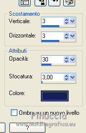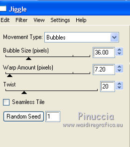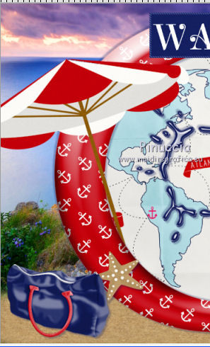 qui puoi trovare qualche risposta ai tuoi dubbi. Se l'argomento che ti interessa non è presente, ti prego di segnalarmelo. Questo tutorial è una creazione di ©Titoune e non può essere copiato su altri siti nè essere offerto per il download. Lo stesso vale per la mia traduzione. Il tutorial è stato creato con Corel17, ma può essere eseguito anche con le altre versioni di PSP. Secondo la versione utilizzata (anteriore a PSP X) potresti ottenere dei risultati differenti. Dalla versione X4, il comando Immagine>Rifletti è stato sostituito con Immagine>Capovolgi in orizzontale, e il comando Immagine>Capovolgi con Immagine>Capovolgi in verticale. Nelle versioni X5 e X6, le funzioni sono state migliorate rendendo disponibile il menu Oggetti. Con il nuovo X7 sono tornati i comandi Rifletti/Capovolgi, ma con nuove differenze. Vedi la scheda sull'argomento qui Per tradurre il tutorial ho usato PSP X. Occorrente: Un tube a scelta. Il resto del materiale qui Filtri in caso di dubbi, ricorda di consultare la mia sezione filtri qui Filters Unlimited 2.0 qui Tramages - Tow the line qui Eye Candy 4000 - Jiggle qui I filtri Tramages si possono usare da soli o importati in Filters Unlimited (come fare vedi qui) Se un filtro fornito appare con questa icona ![]() 1. Apri una nuova immagine trasparente de 750 x 600 pixels. Selezione>Seleziona tutto. 2. Activer l'image 1799927-1680m, e vai a Modifica>Copia. Torna al tuo lavoro e vai a Modifica>Incolla nella selezione. Selezione>Deseleziona. 3. Apri l'elemento sand e vai a Modifica>Copia. Torna al tuo lavoro e vai a Modifica>Incolla come nuovo livello. Spostalo in basso.Vedi l'esempio finale. 4. Apri l'elemento GS-Just_Beachy_frame2 e vai a Modifica>Copia. Torna al tuo lavoro e vai a Modifica>Incolla come nuovo livello. Non spostarlo. 5. Attiva lo strumento Bacchetta magica ![]() e clicca al centro della cornice per selezionarla. Selezione>Modifica>Espandi - 3 pixels. 6. Livelli>Nuovo livello raster. Livelli>Disponi>Sposta giù. Apri l'elemento GS-Just_Beachy_paper8 e vai a Modifica>Copia. Torna al tuo lavoro e vai a Modifica>Incolla nella selezione. Selezione>Deseleziona. 7. Apri l'elemento GS-Just_Beachy_ele9 e vai a Modifica>Copia. Torna al tuo lavoro e vai a Modifica>Incolla come nuovo livello. Non spostarlo. 8. Effetti>Effetti 3D>Sfalsa ombra, colore #161f5b. ![]() Ripeti l'Effetto Sfalsa ombra, cambiando verticale e orizzontale con -3. 9. Attiva il livello della cornice. Effetti>Effetti 3D>Sfalsa ombra, con i settaggi precedenti. 10. Apri l'elemento GS-Just_Beachy_ele15 e vai a Modifica>Copia. Torna al tuo lavoro e vai a Modifica>Incolla come nuovo livello. Spostalo nella parte superiore della cornice.Vedi l'esempio finale. 11. Selezione>Seleziona tutto. Selezione>Mobile. Selezione>Immobilizza. Selezione>Modifica>Seleziona bordature selezione. Selezione>Innalza selezione a livello. Selezione>Deseleziona. Effetti>Plugins>Penta.com - Jeans, con i settaggi standard. ![]() 12. Apri l'elemento GS-Just_Beachy_ele16 e vai a Modifica>Copia. Torna al tuo lavoro e vai a Modifica>Incolla come nuovo livello. Spostalo nella parte superiore destra della cornice.Vedi l'esempio finale. Effetti>Effetti 3D>Sfalsa ombra , colore #161f5b. ![]() 13. Apri l'elemento GS-Just_Beachy_ele6 e vai a Modifica>Copia. Torna al tuo lavoro e vai a Modifica>Incolla come nuovo livello. Spostalo nella parte destra della cornice.Vedi l'esempio finale. Effetti>Effetti 3D>Sfalsa ombra, con i settaggi precedenti. 14. Apri l'elemento GS-Just_Beachy_ele1 e vai a Modifica>Copia. Torna al tuo lavoro e vai a Modifica>Incolla come nuovo livello. Spostalo nella parte inferiore destra della cornice.Vedi l'esempio finale. Effetti>Effetti 3D>Sfalsa ombra, con i settaggi precedenti. 15. Apri l'elemento GS-Just_Beachy_ele13 e vai a Modifica>Copia. Torna al tuo lavoro e vai a Modifica>Incolla come nuovo livello. Spostalo nella parte inferiore destra della cornice.Vedi l'esempio finale. Effetti>Effetti 3D>Sfalsa ombra, con i settaggi precedenti. 16. Apri l'elemento GS-Just_Beachy_ele30 e vai a Modifica>Copia. Torna al tuo lavoro e vai a Modifica>Incolla come nuovo livello. Spostalo nella parte inferiore della cornice.Vedi l'esempio finale. Effetti>Effetti 3D>Sfalsa ombra, con i settaggi precedenti. Apri l'elemento GS-Just_Beachy_ele4 e vai a Modifica>Copia. Torna al tuo lavoro e vai a Modifica>Incolla come nuovo livello. Spostalo nella parte inferiore della cornice.Vedi l'esempio finale. Effetti>Effetti 3D>Sfalsa ombra, con i settaggi precedenti. 17. Apri l'elemento GS-Just_Beachy_ele20 e vai a Modifica>Copia. Torna al tuo lavoro e vai a Modifica>Incolla come nuovo livello. Spostalo nella parte inferiore della cornice.Vedi l'esempio finale. Effetti>Effetti 3D>Sfalsa ombra, con i settaggi precedenti. 18. Apri l'elemento GS-Just_Beachy_ele29 e vai a Modifica>Copia. Torna al tuo lavoro e vai a Modifica>Incolla come nuovo livello. Spostalo nella parte inferiore sinistra della cornice.Vedi l'esempio finale. Effetti>Effetti 3D>Sfalsa ombra, con i settaggi precedenti. 19. Apri l'elemento GS-Just_Beachy_ele22 e vai a Modifica>Copia. Torna al tuo lavoro e vai a Modifica>Incolla come nuovo livello. Spostalo nella parte sinistra della cornice.Vedi l'esempio finale. Porta questo livello sotto il livello della cornice. Livelli>Duplica. Porta questo livello sopra il livello della cornice. 20. Attiva lo strumento Gomma ![]() e cancella la base dell'ombrello che deborda sulla cornice. ![]() Attiva il livello originale. Effetti>Effetti 3D>Sfalsa ombra, con i settaggi precedenti. 21. Apri l'elemento GS-Just_Beachy_ele26 e vai a Modifica>Copia. Torna al tuo lavoro e vai a Modifica>Incolla come nuovo livello. Spostalo nella parte sinistra della cornice.Vedi l'esempio finale. Effetti>Effetti 3D>Sfalsa ombra, con i settaggi precedenti. 22. Apri il tuo tube e vai a Modifica>Copia. Torna al tuo lavoro e vai a Modifica>Incolla come nuovo livello. Immagine>Ridimensiona, se e quanto necessario, tutti i livelli non selezionato.