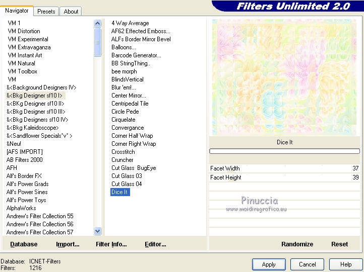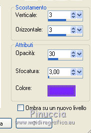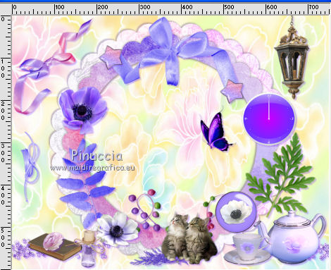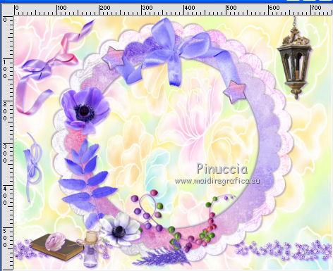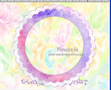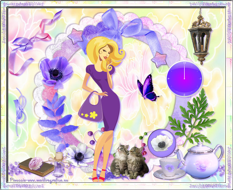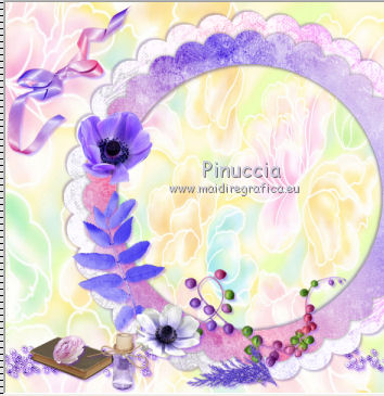 qui puoi trovare qualche risposta ai tuoi dubbi. Se l'argomento che ti interessa non è presente, ti prego di segnalarmelo. Questo tutorial è una creazione di ©Titoune e non può essere copiato su altri siti nè essere offerto per il download. Lo stesso vale per la mia traduzione. Il tutorial è stato creato con Corel17, ma può essere eseguito anche con le altre versioni di PSP. Secondo la versione utilizzata (anteriore a PSP X) potresti ottenere dei risultati differenti. Dalla versione X4, il comando Immagine>Rifletti è stato sostituito con Immagine>Capovolgi in orizzontale, e il comando Immagine>Capovolgi con Immagine>Capovolgi in verticale. Nelle versioni X5 e X6, le funzioni sono state migliorate rendendo disponibile il menu Oggetti. Con il nuovo X7 sono tornati i comandi Rifletti/Capovolgi, ma con nuove differenze. Vedi la scheda sull'argomento qui Per tradurre il tutorial ho usato PSP X. Occorrente: Un tube a scelta. Il resto del materiale qui Filtri in caso di dubbi, ricorda di consultare la mia sezione filtri qui Filters Unlimited 2.0 qui &<Bkg Designer sf10I> - Dice it (da importare in Unlimited) qui Simple - Left Right Wrap (bonus) qui I filtri Simple si possono usare da soli o importati in Filters Unlimited (come fare vedi qui) Se un filtro fornito appare con questa icona ![]() 1. Apri una nuova immagine trasparente 750 x 600 pixels. Selezione>Seleziona tutto. 2. Apri l'immagine simple-flower-wallpaper-patterns-10 e vai a Modifica>Copia. Torna al tuo lavoro e vai a Modifica>Incolla nella selezione. Selezione>Deseleziona. 3. Apri l'elemento Miz_Friendship Blooms_element (52) e vai a Modifica>Copia. Torna al tuo lavoro e vai a Modifica>Incolla come nuovo livello. Non spostarlo. 4. Attiva lo strumento Bacchetta magica ![]() cliquer au centre Selezione>Modifica>Espandi - 8 pixels. 6. Livelli>Nuovo livello raster. Livelli>Disponi>Sposta giù. 7. Apri nuovamente l'immagine simple-flower-wallpaper-patterns-10 e vai a Modifica>Copia. Torna al tuo lavoro e vai a Modifica>Incolla nella selezione. Selezione>Deseleziona. 8. Apri l'elemento Miz_Friendship Blooms_element (51) e vai a Modifica>Copia. Torna al tuo lavoro e vai a Modifica>Incolla come nuovo livello. Spostalo nella parte inferiore della cornice.![]() Effetti>Plugins>Simple - Left Right Wrap. Se necessario, posiziona meglio l'elemento.Vedi l'esempio finale. 9.Effetti>Effetti 3D>Sfalsa ombra, colore #7927fd. ![]() 10. Attiva il livello superiore. Apri l'elemento Miz_Friendship Blooms_element (18) e vai a Modifica>Copia. Torna al tuo lavoro e vai a Modifica>Incolla come nuovo livello. Spostalo nella parte inferiore della cornice.Vedi l'esempio finale. Effetti>Effetti 3D>Sfalsa ombra, con i settaggi precedenti. 11. Apri l'elemento Miz_Friendship Blooms_element (35) e vai a Modifica>Copia. Torna al tuo lavoro e vai a Modifica>Incolla come nuovo livello. Spostalo nella parte inferiore della cornice.Vedi l'esempio finale. Effetti>Effetti 3D>Sfalsa ombra, con i settaggi precedenti. 12. Apri l'elemento Miz_Friendship Blooms_element (13) e vai a Modifica>Copia. Torna al tuo lavoro e vai a Modifica>Incolla come nuovo livello. Spostalo nella parte inferiore sinistra della cornice.Vedi l'esempio finale. Effetti>Effetti 3D>Sfalsa ombra, con i settaggi precedenti. 13. Apri l'elemento Miz_Friendship Blooms_element (1) e vai a Modifica>Copia. Torna al tuo lavoro e vai a Modifica>Incolla come nuovo livello. Spostalo nella parte inferiore sinistra della cornice.Vedi l'esempio finale. Effetti>Effetti 3D>Sfalsa ombra, con i settaggi precedenti. 14. Apri l'elemento Miz_Friendship Blooms_element (47) e vai a Modifica>Copia. Torna al tuo lavoro e vai a Modifica>Incolla come nuovo livello. Spostalo nella parte inferiore sinistra della cornice.Vedi l'esempio finale. Effetti>Effetti 3D>Sfalsa ombra, con i settaggi precedenti. 15. Apri l'elemento Miz_Friendship Blooms_element (10) e vai a Modifica>Copia. Torna al tuo lavoro e vai a Modifica>Incolla come nuovo livello. Spostalo sul libro.![]() Effetti>Effetti 3D>Sfalsa ombra, con i settaggi precedenti. 16. Apri l'elemento Miz_Friendship Blooms_element (37) e vai a Modifica>Copia. Torna al tuo lavoro e vai a Modifica>Incolla come nuovo livello. Spostalo nella parte inferiore sinistra della cornice.Vedi l'esempio finale. Effetti>Effetti 3D>Sfalsa ombra, con i settaggi precedenti. 17. Apri l'elemento Miz_Friendship Blooms_element (12) e vai a Modifica>Copia. Torna al tuo lavoro e vai a Modifica>Incolla come nuovo livello. Spostalo nella parte superiore sinistra della cornice.Vedi l'esempio finale. Effetti>Effetti 3D>Sfalsa ombra, con i settaggi precedenti. 18. Apri l'elemento Miz_Friendship Blooms_element (22) e vai a Modifica>Copia. Torna al tuo lavoro e vai a Modifica>Incolla come nuovo livello. Spostalo in alto a sinistra.![]() Effetti>Effetti 3D>Sfalsa ombra, con i settaggi precedenti. 19. Apri l'elemento Miz_Friendship Blooms_element (25) e vai a Modifica>Copia. Torna al tuo lavoro e vai a Modifica>Incolla come nuovo livello. Spostalo a sinistra.Vedi l'esempio finale. Effetti>Effetti 3D>Sfalsa ombra, con i settaggi precedenti. 20. Apri l'elemento Miz_Friendship Blooms_element (19) e vai a Modifica>Copia. Torna al tuo lavoro e vai a Modifica>Incolla come nuovo livello. Spostalo nella parte superiore della cornice.Vedi l'esempio finale. Effetti>Effetti 3D>Sfalsa ombra, con i settaggi precedenti. 21. Apri l'elemento Miz_Friendship Blooms_element (26) e vai a Modifica>Copia. Torna al tuo lavoro e vai a Modifica>Incolla come nuovo livello. Spostalo nella parte superiore della cornice.Vedi l'esempio finale. Effetti>Effetti 3D>Sfalsa ombra, con i settaggi precedenti. Livelli>Duplica. Immagine>Rifletti. Spostalo come nel mio esempio.22. Apri l'elemento Miz_Friendship Blooms_element (46) e vai a Modifica>Copia. Torna al tuo lavoro e vai a Modifica>Incolla come nuovo livello. Spostalo in alto a destra.![]() Effetti>Effetti 3D>Sfalsa ombra, con i settaggi precedenti. 23. Apri l'elemento large-Mac-Clock-Apple-33