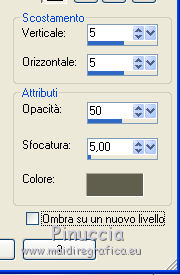 qui puoi trovare qualche risposta ai tuoi dubbi. Se l'argomento che ti interessa non č presente, ti prego di segnalarmelo. Questo tutorial č una creazione di ©Titoune e non puņ essere copiato su altri siti nč essere offerto per il download. Lo stesso vale per la mia traduzione. Il tutorial č stato creato con Corel18, ma puņ essere eseguito anche con le altre versioni di PSP. Secondo la versione utilizzata (anteriore a PSP X) potresti ottenere dei risultati differenti. Dalla versione X4, il comando Immagine>Rifletti č stato sostituito con Immagine>Capovolgi in orizzontale, e il comando Immagine>Capovolgi con Immagine>Capovolgi in verticale. Nelle versioni X5 e X6, le funzioni sono state migliorate rendendo disponibile il menu Oggetti. Con il nuovo X7 sono tornati i comandi Rifletti/Capovolgi, ma con nuove differenze. Vedi la scheda sull'argomento qui Per tradurre il tutorial ho usato PSP X. Occorrente: Un tube a scelta. Il resto del materiale qui Il tube del paesaggio č di Katussia. ![]() 1. Apri una nuova immagine trasparente 750 x 600 pixels. Selezione>Seleziona tutto. 2. Apri l'elemento White_Christmas_MoleminaScrap_pp (2), e vai a Modifica>Copia. Torna al tuo lavoro e vai a Modifica>Incolla nella selezione. Selezione>Deseleziona. 3. Apri l'elemento kTs_paysage_neige13, e vai a Modifica>Copia. Torna al tuo lavoro e vai a Modifica>Incolla come nuovo livello. Posiziona correttamente il tube, come nell'esempio.![]() Livelli>Duplica. Cambia la modalitą di miscelatura di questo livello in Luce diffusa. 4. Apri l'elemento White_Christma_MoleminaScrap_el (82), e vai a Modifica>Copia. Torna al tuo lavoro e vai a Modifica>Incolla come nuovo livello. Spostalo al centro.Vedi l'esempio finale. Effetti>Effetti 3D>Sfalsa ombra, con i settaggi precedenti. 5. Apri l'elemento White_Christma_MoleminaScrap_el (81), e vai a Modifica>Copia. Torna al tuo lavoro e vai a Modifica>Incolla come nuovo livello. Spostalo nella parte inferiore.Vedi l'esempio finale. Effetti>Effetti 3D>Sfalsa ombra, con i settaggi precedenti. 6. Effetti>Effetti 3D>Sfalsa ombra, colore #605f5e. ![]() 7. Apri l'elemento White_Christma_MoleminaScrap_el (77), e vai a Modifica>Copia. Torna al tuo lavoro e vai a Modifica>Incolla come nuovo livello. Spostalo nella parte superiore.Vedi l'esempio finale. Effetti>Effetti 3D>Sfalsa ombra, con i settaggi precedenti. 8. Apri l'elemento White_Christma_MoleminaScrap_el (151), e vai a Modifica>Copia. Torna al tuo lavoro e vai a Modifica>Incolla come nuovo livello. Spostalo a sinistra.Vedi l'esempio finale. 9. Effetti>Effetti di riflesso>Specchio rotante. ![]() Effetti>Effetti 3D>Sfalsa ombra, con i settaggi precedenti. 10. Apri l'elemento White_Christma_MoleminaScrap_el (146), e vai a Modifica>Copia. Torna al tuo lavoro e vai a Modifica>Incolla come nuovo livello. Spostalo in alto a sinistra.Vedi l'esempio finale. Effetti>Effetti 3D>Sfalsa ombra, con i settaggi precedenti. 11. Apri l'elemento White_Christma_MoleminaScrap_el (115), e vai a Modifica>Copia. Torna al tuo lavoro e vai a Modifica>Incolla come nuovo livello. Spostalo in alto a sinistra.Vedi l'esempio finale. Effetti>Effetti 3D>Sfalsa ombra, con i settaggi precedenti. 12. Apri l'elemento White_Christma_MoleminaScrap_el (23), e vai a Modifica>Copia. Torna al tuo lavoro e vai a Modifica>Incolla come nuovo livello. Spostalo in alto a destra.Vedi l'esempio finale. Effetti>Effetti 3D>Sfalsa ombra, con i settaggi precedenti. 13. Apri l'elemento White_Christma_MoleminaScrap_el (149), e vai a Modifica>Copia. Torna al tuo lavoro e vai a Modifica>Incolla come nuovo livello. Spostalo in basso a destra.Vedi l'esempio finale. Effetti>Effetti 3D>Sfalsa ombra, con i settaggi precedenti. 14. Apri l'elemento White_Christma_MoleminaScrap_el (144), e vai a Modifica>Copia. Torna al tuo lavoro e vai a Modifica>Incolla come nuovo livello. Spostalo in basso a destra, ai piedi dell'albero.Vedi l'esempio finale. Effetti>Effetti 3D>Sfalsa ombra, con i settaggi precedenti. 15. Apri l'elemento White_Christma_MoleminaScrap_el (154), e vai a Modifica>Copia. Torna al tuo lavoro e vai a Modifica>Incolla come nuovo livello. Spostalo nella parte inferiore.Vedi l'esempio finale. Effetti>Effetti 3D>Sfalsa ombra, con i settaggi precedenti. 16. Apri il tube Greg_Giordano_PuppiesintheSnow, e vai a Modifica>Copia. Torna al tuo lavoro e vai a Modifica>Incolla come nuovo livello. Immagine>Rifletti. Posiziona il tube sulla slitta.Vedi l'esempio finale. Effetti>Effetti 3D>Sfalsa ombra, con i settaggi precedenti. 17. Apri il tuo tube, e vai a Modifica>Copia. Torna al tuo lavoro e vai a Modifica>Incolla come nuovo livello. Immagine>Ridimensiona, se e quanto necessario, tutti i livelli non selezionato. Spostalo dove preferisci o vedi il mio esempio.Effetti>Effetti 3D>Sfalsa ombra, con i settaggi precedenti. 18. Apri l'elemento titoune_cadre_scrap_plaisir_hivernal, e vai a Modifica>Copia. Torna al tuo lavoro e vai a Modifica>Incolla come nuovo livello. Firma il tuo lavoro. Livelli>Unisci>Unisci tutto e salva in formato jpg. ![]() Se hai problemi o dubbi, o trovi un link non funzionante, scrivimi. 20 Dicembre 2015 |