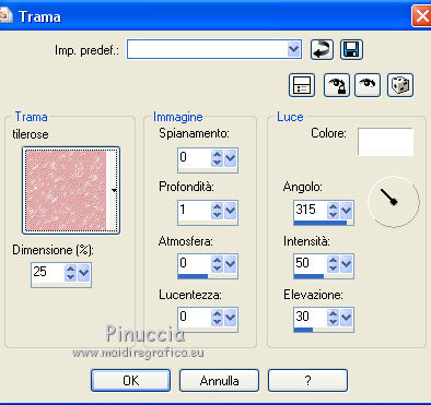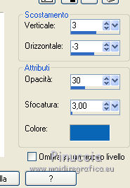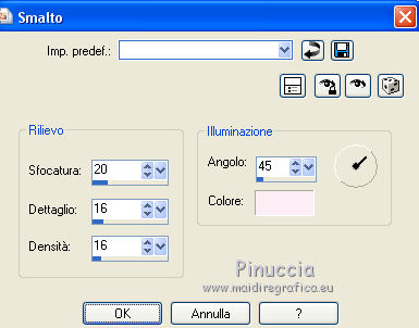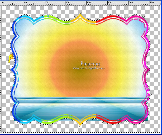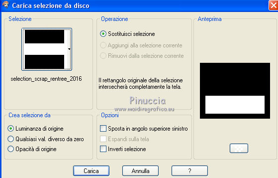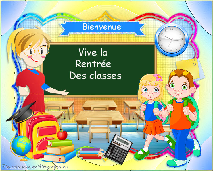 qui puoi trovare qualche risposta ai tuoi dubbi. Se l'argomento che ti interessa non è presente, ti prego di segnalarmelo. Questo tutorial è una creazione di ©Titoune e non può essere copiato su altri siti nè essere offerto per il download. Lo stesso vale per la mia traduzione. Il tutorial è stato creato con Corel17, ma può essere eseguito anche con le altre versioni di PSP. Secondo la versione utilizzata (anteriore a PSP X) potresti ottenere dei risultati differenti. Dalla versione X4, il comando Immagine>Rifletti è stato sostituito con Immagine>Capovolgi in orizzontale, e il comando Immagine>Capovolgi con Immagine>Capovolgi in verticale. Nelle versioni X5 e X6, le funzioni sono state migliorate rendendo disponibile il menu Oggetti. Con il nuovo X7 sono tornati i comandi Rifletti/Capovolgi, ma con nuove differenze. Vedi la scheda sull'argomento qui Per tradurre il tutorial ho usato PSP X. Occorrente: Uno o due tubes a scelta. Il resto del materiale qui Gli elementi scrap utilizzati sono una creazione Yopriceville Filtri in caso di dubbi, ricorda di consultare la mia sezione filtri qui Mura's Meister - Perspective Tiling qui ![]() Metti i gradienti nella cartella Gradienti. Metti la selezione nella cartella Selezioni. Metti la trama nella cartella Trame. 1. Passa il colore di primo piano a Gradiente e seleziona il gradiente "scrap_rentree_2016", stile sprazzo di luce. ![]() 2. Apri una nuova immagine trasparente 750 x 600 pixels. Apri l'elemento rijGxE5rT (cornice) e vai a Modifica>Copia. Torna al tuo lavoro e vai a Modifica>Incolla come nuovo livello. 3. Attiva lo strumento Bacchetta magica ![]() e clicca al centro della cornice per selezionarla. Selezione>Modifica>Espandi - 3 pixels. 4. Livelli>Nuovo livello raster. Livelli>Disponi>Sposta giù. Riempi con il gradiente.5. Effetti>Effetti di trama>Trama - Trama Tilerose ![]() 6. Effetti>Effetti di trama>Trama - trama Griglia ![]() Selezione>Deseleziona. 7. Livelli>Nuovo livello raster. Selezione>Carica/Salva selezione>Carica selezione da disco. Cerca e carica la selezione "selection_scrap_rentree_2016". ![]() 8. Apri l'immagine background-green-blue-strips1 e vai a Modifica>Copia. Torna al tuo lavoro e vai a Modifica>Incolla nella selezione. 9. Effetti>Plugins>Mura's Meister - Perspective Tiling. ![]() Rinomina questo livello "pavimento". Selezione>Deseleziona. 10. Attiva nuovamente il livello della cornice. Seleziona la parte esterna con la bacchetta magica ![]() ![]() Selezione>Modifica>Espandi 3 pixels. Attiva il livello "pavimento". Premi sulla tatiera il tasto CANC ![]() Selezione>Deseleziona. 11. Apri l'elemento School_Classroom_with_Blackboard_and_Desks_PNG_Clipart_Picture e vai a Modifica>Copia. Torna al tuo lavoro e vai a Modifica>Incolla come nuovo livello. Spostalo sul "pavimento".12. Effetti>Effetti 3D>Sfalsa ombra, colore #0b65b5. ![]() 13. Apri gli elementi wa1 wa2 et wa2 Modifica>Copia. Torna al tuo lavoro e vai a Modifica>Incolla come nuovo livello. Posiziona i testi sulla lavagna.Niente Sfalsa ombra. 14. Attiva nuovamente il livello della cornice. Effetti>Effetti 3D>Sfalsa ombra, colore #0b65b5. ![]() Ripeti l'Effetto Sfalsa ombra, cambiando verticale e orizzontale con -3/3. 15. Apri l'elemento bannière e vai a Modifica>Copia. Torna al tuo lavoro e vai a Modifica>Incolla come nuovo livello. Spostalo sopra la lavagna.Vedi l'esempio finale. Effetti>Effetti 3D>Sfalsa ombra, colore #0b65b5. ![]() 16. Apri l'elemento 01 (111) (orologio) e vai a Modifica>Copia. Torna al tuo lavoro e vai a Modifica>Incolla come nuovo livello. Spostalo in alto a destra.Vedi l'esempio finale. Effetti>Effetti 3D>Sfalsa ombra, con i settaggi precedenti. 17. Apri l'elemento 01 (70) (post-it) e vai a Modifica>Copia. Torna al tuo lavoro e vai a Modifica>Incolla come nuovo livello. Spostalo a destra.Vedi l'esempio finale. Effetti>Effetti 3D>Sfalsa ombra, con i settaggi precedenti. 18. Apri l'elemento 01 (142) (matite) e vai a Modifica>Copia. Torna al tuo lavoro e vai a Modifica>Incolla come nuovo livello. Spostalo nella parte inferiore.Vedi l'esempio finale. Effetti>Effetti 3D>Sfalsa ombra, con i settaggi precedenti. 19. Apri l'elemento 01 (126) (calcolatrice) e vai a Modifica>Copia. Torna al tuo lavoro e vai a Modifica>Incolla come nuovo livello. Spostalo nella parte inferiore.Vedi l'esempio finale. Effetti>Effetti 3D>Sfalsa ombra, con i settaggi precedenti. 20. Apri l'elemento Blonde_red_dress (maestra) e vai a Modifica>Copia. Torna al tuo lavoro e vai a Modifica>Incolla come nuovo livello. Spostalo a sinistra.Vedi l'esempio finale. Livelli>Duplica. Cambia la modalità di miscelatura di questo livello in Luce diffusa. Attiva nuovamente il livello originale. Effetti>Effetti 3D>Sfalsa ombra, con i settaggi precedenti. 21. Apri l'elemento School_Backpack_and_Decorations_PNG_Clipart e vai a Modifica>Copia. Torna al tuo lavoro e vai a Modifica>Incolla come nuovo livello. Spostalo in basso a sinistra.Vedi l'esempio finale. Effetti>Effetti 3D>Sfalsa ombra, con i settaggi precedenti. 22. Apri il tuo tube e vai a Modifica>Copia. Torna al tuo lavoro e vai a Modifica>Incolla come nuovo livello. Immagine>Ridimensiona, se e quanto necessario, tutti i livelli non selezionato. Spostalo dove preferisci o vedi il mio esempio.Effetti>Effetti 3D>Sfalsa ombra, con i settaggi precedenti. 23. Attiva il livello Raster 1, ancora trasparente, e riempilo con il gradiente.24. Regola>Sfocatura>Sfocatura gaussiana - raggio 45. ![]() 25. Effetti>Effetti artistici>Smalto. ![]() 26. Cambia il gradiente di primo piano con il gradiente "scrap_rentree_2016_2", con gli stessi settaggi ![]() 27. Attiva il livello superiore. Livelli>Nuovo livello raster. Selezione>Seleziona tutto. Riempi la selezione con il gradiente.Selezione>Modifica>Contrai - 5 pixels. Premi sulla tastiera il tasto CANC. Selezione>Inverti. Effetti>Effetti artistici>Smalto, con i settaggi precedenti. 28. Effetti>Effetti 3D>Smusso a incasso. ![]() Selezione>Deseleziona. 29. Firma il tuo lavoro. Livelli>Unisci>U