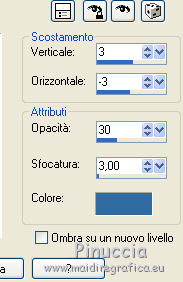 qui puoi trovare qualche risposta ai tuoi dubbi. Se l'argomento che ti interessa non è presente, ti prego di segnalarmelo. Questo tutorial è una creazione di ©Titoune e non può essere copiato su altri siti nè essere offerto per il download. Lo stesso vale per la mia traduzione. Il tutorial è stato creato con Corel17, ma può essere eseguito anche con le altre versioni di PSP. Secondo la versione utilizzata (anteriore a PSP X) potresti ottenere dei risultati differenti. Dalla versione X4, il comando Immagine>Rifletti è stato sostituito con Immagine>Capovolgi in orizzontale, e il comando Immagine>Capovolgi con Immagine>Capovolgi in verticale. Nelle versioni X5 e X6, le funzioni sono state migliorate rendendo disponibile il menu Oggetti. Con il nuovo X7 sono tornati i comandi Rifletti/Capovolgi, ma con nuove differenze. Vedi la scheda sull'argomento qui Per tradurre il tutorial ho usato PSP X. Occorrente: Uno o due tubes personnagio a scelta. Il resto del materiale qui Filtri in caso di dubbi, ricorda di consultare la mia sezione filtri qui Eye Candy 4000 - Swirl qui ![]() Metti la selezione nella cartella Selezioni. 1. Apri una nuova immagine trasparente 750 x 600 pixels. Selezione>Seleziona tutto. 2. Apri l'elemento ASB_ASplashOfParadise_Papers (7) e vai a Modifica>Copia. Torna al tuo lavoro e vai a Modifica>Incolla nella selezione. Selezione>Deseleziona. 3. Livelli>Nuovo livello raster. Selezione>Carica/Salva selezione>Carica selezione da disco. Cerca e carica la selezione "selection_scrap_splash_paradise". ![]() 4. Apri l'elemento ASB_ASplashOfParadise_Papers (5) e vai a Modifica>Copia. Torna al tuo lavoro e vai a Modifica>Incolla nella selezione. 5. Selezione>Modifica>Seleziona bordature selezione. ![]() 6. Attiva il livello inferiore. Selezione>Innalza selezione a livello. 7. Regola>Aggiungi/Rimuovi disturbo>Aggiungi disturbo. ![]() Selezione>Deseleziona. Livelli>Disponi>Porta in alto. Livelli>Unisci>Unisci giù. 8. Effetti>Effetti 3D>Sfalsa ombra, colore #2f6ba0. ![]() Ripeti l'Effetto Sfalsa ombra, verticale e orizzontale -3/3. 9. Apri l'elemento ASB_ASplashOfParadise_Elements (34) e vai a Modifica>Copia. Torna al tuo lavoro e vai a Modifica>Incolla come nuovo livello. Spostalo nella parte inferiore della cornice.Vedi l'esempio finale. Porta questo livello sotto il livello della cornice. Effetti>Effetti 3D>Sfalsa ombra, colore #2f6ba0. ![]() 10. Apri l'elemento ASB_ASplashOfParadise_Elements (50) e vai a Modifica>Copia. Torna al tuo lavoro e vai a Modifica>Incolla come nuovo livello. Spostalo nella parte inferiore sinistra della cornice.Vedi l'esempio finale. Effetti>Effetti 3D>Sfalsa ombra, con i settaggi precedenti. Livelli>Duplica. Immagine>Rifletti. Livelli>Unisci>Unisci giù. Cancella la parte del tube all'interno della cornice.![]() 11. Attiva nuovamente il livello superiore. Apri l'elemento ASB_ASplashOfParadise_Elements (39) e vai a Modifica>Copia. Torna al tuo lavoro e vai a Modifica>Incolla come nuovo livello. Spostalo nella parte superiore della cornice.Vedi l'esempio finale. Effetti>Effetti 3D>Sfalsa ombra, con i settaggi precedenti. 12. Apri l'elemento ASB_ASplashOfParadise_Elements (36) e vai a Modifica>Copia. Torna al tuo lavoro e vai a Modifica>Incolla come nuovo livello. Spostalo nella parte superiore della cornice.Vedi l'esempio finale. Effetti>Effetti 3D>Sfalsa ombra, con i settaggi precedenti. 13. Apri l'elemento ASB_ASplashOfParadise_Elements (24) e vai a Modifica>Copia. Torna al tuo lavoro e vai a Modifica>Incolla come nuovo livello. Spostalo nella parte superiore della cornice.Vedi l'esempio finale. Effetti>Effetti 3D>Sfalsa ombra, con i settaggi precedenti. 14. Apri l'elemento ASB_ASplashOfParadise_Elements (3) e vai a Modifica>Copia. Torna al tuo lavoro e vai a Modifica>Incolla come nuovo livello. Spostalo nella parte superiore destra della cornice.Vedi l'esempio finale. Effetti>Effetti 3D>Sfalsa ombra, con i settaggi precedenti. 15. Apri l'elemento ASB_ASplashOfParadise_Elements (27) e vai a Modifica>Copia. Torna al tuo lavoro e vai a Modifica>Incolla come nuovo livello. Spostalo nella parte superiore destra della cornice.Vedi l'esempio finale. Effetti>Effetti 3D>Sfalsa ombra, con i settaggi precedenti. 16. Apri l'elemento ASB_ASplashOfParadise_Elements (46) e vai a Modifica>Copia. Torna al tuo lavoro e vai a Modifica>Incolla come nuovo livello. Spostalo nella parte destra della cornice.Vedi l'esempio finale. Effetti>Effetti 3D>Sfalsa ombra, con i settaggi precedenti. 17. Apri l'elemento ASB_ASplashOfParadise_Elements (56) e vai a Modifica>Copia. Torna al tuo lavoro e vai a Modifica>Incolla come nuovo livello. Spostalo nella parte destra della cornice.Vedi l'esempio finale. Effetti>Effetti 3D>Sfalsa ombra, con i settaggi precedenti. 18. Apri l'elemento ASB_ASplashOfParadise_Elements (6) e vai a Modifica>Copia. Torna al tuo lavoro e vai a Modifica>Incolla come nuovo livello. Spostalo nella parte inferiore destra della cornice.Vedi l'esempio finale. Effetti>Effetti 3D>Sfalsa ombra, con i settaggi precedenti. 19. Apri l'elemento ASB_ASplashOfParadise_Elements (48) e vai a Modifica>Copia. Torna al tuo lavoro e vai a Modifica>Incolla come nuovo livello. Spostalo nella parte inferiore destra della cornice.Vedi l'esempio finale. Effetti>Effetti 3D>Sfalsa ombra, con i settaggi precedenti. 20. Apri l'elemento ASB_ASplashOfParadise_Elements (7) e vai a Modifica>Copia. Torna al tuo lavoro e vai a Modifica>Incolla come nuovo livello. Spostalo nella parte inferiore destra della cornice.Vedi l'esempio finale. Effetti>Effetti 3D>Sfalsa ombra, con i settaggi precedenti. 21. Apri l'elemento ASB_ASplashOfParadise_Elements (33) e vai a Modifica>Copia. Torna al tuo lavoro e vai a Modifica>Incolla come nuovo livello. Spostalo nella parte inferiore destra della cornice.![]() Effetti>Effetti 3D>Sfalsa ombra, con i settaggi precedenti. 22. Apri l'elemento ASB_ASplashOfParadise_Elements (4) e vai a Modifica>Copia. Torna al tuo lavoro e vai a Modifica>Incolla come nuovo livel