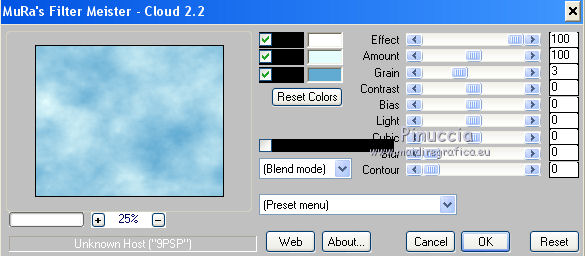 Premere successivamente il tasto Reset serve per cambiare casualmente (ragione per la quale il tuo risultato non potrà essere uguale al mio esempio), l'aspetto delle nuvole.