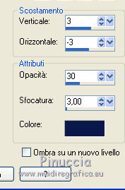 qui puoi trovare qualche risposta ai tuoi dubbi. Se l'argomento che ti interessa non è presente, ti prego di segnalarmelo. Questo tutorial è una creazione di ©Titoune e non può essere copiato su altri siti nè essere offerto per il download. Lo stesso vale per la mia traduzione. Il tutorial è stato creato con Corel17, ma può essere eseguito anche con le altre versioni di PSP. Secondo la versione utilizzata (anteriore a PSP X) potresti ottenere dei risultati differenti. Dalla versione X4, il comando Immagine>Rifletti è stato sostituito con Immagine>Capovolgi in orizzontale, e il comando Immagine>Capovolgi con Immagine>Capovolgi in verticale. Nelle versioni X5 e X6, le funzioni sono state migliorate rendendo disponibile il menu Oggetti. Con il nuovo X7 sono tornati i comandi Rifletti/Capovolgi, ma con nuove differenze. Vedi la scheda sull'argomento qui Per tradurre il tutorial ho usato PSP X. Occorrente: Un tube a scelta. Il resto del materiale qui Il tube utilizzato è di Odette. Filtri in caso di dubbi, ricorda di consultare la mia sezione filtri qui Mura's Meister - Perspective Tiling qui Simple - Left Right Wrap (bonus) qui ![]() 1. Apri l'elemento "image départ2. Duplicalo con la combinazione di tasti maiuscola+D ![]() Chiudi l'originale. La copia, che sarà la base del tuo lavoro, non è vuota, ma contiene 3 selezioni salvate sul canale alfa. Selezione>Seleziona tutto. 2. Apri l'elemento MC_SYHO_summernight_P06 e vai a Modifica>Copia. Torna al tuo lavoro e vai a Modifica>Incolla nella selezione. Selezione>Deseleziona. 3. Regola>Sfocatura>Sfocatura gaussiana - raggio 15. ![]() 4. Livelli>Nuovo livello raster. Selezione>Carica/Salva selezione>Carica selezione da canale alfa. La selezione selection#1 è subito disponibile. Devi soltanto cliccare Carica. ![]() 5. Apri l'elemento MC_SYHO_summernight_P03 e vai a Modifica>Copia. Torna al tuo lavoro e vai a Modifica>Incolla nella selezione. 6. Effetti>Effetti 3D>Smusso a incasso. ![]() 7. Livelli>Nuovo livello raster. Selezione>Carica/Salva selezione>Carica selezione da canale alfa. Apri il menu delle selezioni e carica selection#2. ![]() 8. Apri l'elemento MC_SYHO_summernight_P01 e vai a Modifica>Copia. Torna al tuo lavoro e vai a Modifica>Incolla nella selezione. Selezione>Deseleziona. Livelli>Unisci>Unisci giù. 9. Attiva il livello inferiore. Livelli>Nuovo livello raster. 10. Selezione>Carica/Salva selezione>Carica selezione da canale alfa. Apri il menu delle selezioni e carica selection#3. ![]() 11. Apri l'elemento MC_SYHO_summernight_P09 e vai a Modifica>Copia. Torna al tuo lavoro e vai a Modifica>Incolla nella selezione. 12. Effetti>Plugins>Mura's Meister - Perspective Tiling. ![]() Selezione>Deseleziona. 13. Attiva il livello della cornice. Attiva lo strumento Bacchetta magica ![]() e clicca nella parte esterna per selezionarla. ![]() Attiva il livello inferiore. 14. Apri l'elemento MC_SYHO_summernight_E03 e vai a Modifica>Copia. Torna al tuo lavoro e vai a Modifica>Incolla nella selezione. Selezione>Deseleziona. Livelli>Duplica. Immagine>Rifletti. 15. Apri l'elemento MC_SYHO_summernight_E01 e vai a Modifica>Copia. Torna al tuo lavoro e vai a Modifica>Incolla come nuovo livello. Non spostarlo. 16. Apri l'elemento MC_SYHO_summernight_E02 e vai a Modifica>Copia. Torna al tuo lavoro e vai a Modifica>Incolla come nuovo livello. Spostalo nella parte superiore della cornice.Vedi l'esempio finale. 17. Effetti>Effetti 3D>Sfalsa ombra, colore #0b194a. ![]() 18. Apri l'elemento MC_SYHO_summernight_E28 e vai a Modifica>Copia. Torna al tuo lavoro e vai a Modifica>Incolla come nuovo livello. Spostalo nella parte superiore della cornice.Vedi l'esempio finale. Effetti>Effetti 3D>Sfalsa ombra, con i settaggi precedenti. 19. Attiva nuovamente il livello della cornice. Effetti>Effetti 3D>Sfalsa ombra, colore #0b194a. ![]() Ripeti l'Effetto Sfalsa ombra, verticale e orizzontale -3/3. 20. Apri l'elemento MC_SYHO_summernight_E04 e vai a Modifica>Copia. Torna al tuo lavoro e vai a Modifica>Incolla come nuovo livello. Effetti>Plugins>Simple - Left Right Wrap. Spostalo nella parte superiore della cornice.Vedi l'esempio finale. Effetti>Effetti 3D>Sfalsa ombra, colore #0b194e. ![]() 21. Apri l'elemento MC_SYHO_summernight_E09 e vai a Modifica>Copia. Torna al tuo lavoro e vai a Modifica>Incolla come nuovo livello. Spostalo nella parte superiore sinistra della cornice.Vedi l'esempio finale. Effetti>Effetti 3D>Sfalsa ombra, con i settaggi precedenti. 22. Apri l'elemento MC_SYHO_summernight_E10 e vai a Modifica>Copia. Torna al tuo lavoro e vai a Modifica>Incolla come nuovo livello. Spostalo nella parte superiore destra della cornice.Vedi l'esempio finale. Effetti>Effetti 3D>Sfalsa ombra, con i settaggi precedenti. 23. Apri l'elemento MC_SYHO_summernight_E20 e vai a Modifica>Copia. Torna al tuo lavoro e vai a Modifica>Incolla come nuovo livello. Spostalo nella parte destra della cornice.Vedi l'esempio finale. Effetti>Effetti 3D>Sfalsa ombra, con i settaggi precedenti. 24. Apri l'elemento MC_SYHO_summernight_E15 e vai a Modifica>Copia. Torna al tuo lavoro e vai a Modifica>Incolla come nuovo livello. Spostalo nella parte inferiore destra della cornice.Vedi l'esempio finale. Effetti>Effetti 3D>Sfalsa ombra, con i settaggi precedenti. 25. Apri l'elemento MC_SYHO_summernight_E26 e vai a Modifica>Copia. Torna al tuo lavoro e vai a Modifica>Incolla come nuovo livello. Spostalo nella parte inferiore destra della cornice.Vedi l'esempio finale. Effetti>Effetti 3D>Sfalsa ombra, con i settaggi precedenti. 26. Apri l'elemento MC_SYHO_summernight_E18 e vai a Modifica>Copia. Torna al tuo lavoro e vai a Modifica>Incolla come nuovo livello. Spostalo nella parte inferiore destra della cornice.Vedi l'esempio finale. Effetti>Effetti 3D>Sfalsa ombra, con i settaggi precedenti. 27. Apri l'elemento MC_SYHO_summernight_E24 e vai a Modifica>Copia. Torna al tuo lavoro e vai a Modifica>Incolla come nuovo livello. Spostalo nella parte inferiore destra della cornice.Vedi l'esempio fin