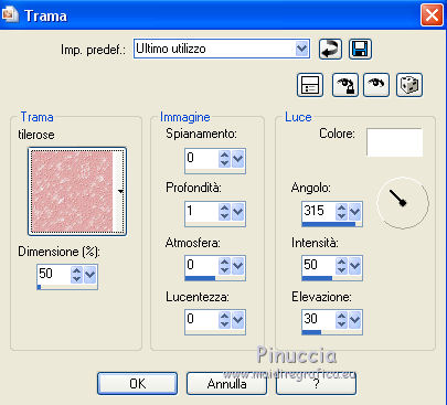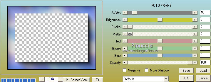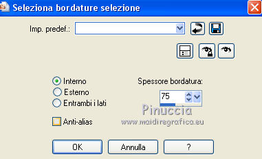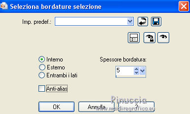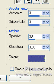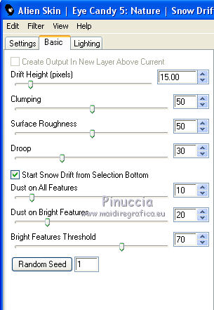 qui puoi trovare qualche risposta ai tuoi dubbi. Se l'argomento che ti interessa non è presente, ti prego di segnalarmelo. Questo tutorial è una creazione di ©Titoune e non può essere copiato su altri siti nè essere offerto per il download. Lo stesso vale per la mia traduzione. Il tutorial è stato creato con Corel17, ma può essere eseguito anche con le altre versioni di PSP. Secondo la versione utilizzata (anteriore a PSP X) potresti ottenere dei risultati differenti. Dalla versione X4, il comando Immagine>Rifletti è stato sostituito con Immagine>Capovolgi in orizzontale, e il comando Immagine>Capovolgi con Immagine>Capovolgi in verticale. Nelle versioni X5 e X6, le funzioni sono state migliorate rendendo disponibile il menu Oggetti. Con il nuovo X7 sono tornati i comandi Rifletti/Capovolgi, ma con nuove differenze. Vedi la scheda sull'argomento qui Per tradurre il tutorial ho usato PSP X. Occorrente: Un tube a scelta. Il resto del materiale qui Filtri in caso di dubbi, ricorda di consultare la mia sezione filtri qui Filter Unlimited 2.0 qui AAA Frames - Foto Frame qui Simple - Top Left Mirror qui Alien Skin Eye Candy 5 Nature - Snow Drift qui I filtri Simple si possono usare da soli o importati in Filters Unlimited (come fare vedi qui) Se un filtro fornito appare con questa icona Animation Shop qui ![]() Metti le selezioni nella cartella Selezioni. Metti la trama nella cartella trame. 1. Apri una nuova immagine trasparente 900 x 650 pixels. Selezione>Seleziona tutto. 2. Apri l'immagine 52469922_peyzazh1_kopiya, e vai a Modifica>Copia. Torna al tuo lavoro e vai a Modifica>Incolla nella selezione. Selezione>Deseleziona. 3. Effetti>Effetti di immagine>Motivo unico, con i settaggi standard. ![]() 4. Regola>Sfocatura>Sfocatura gaussiana - raggio 25. ![]() Selezione>Deseleziona. 5. Selezione>Modifica>Seleziona bordature selezione. ![]() Selezione>Innalza selezione a livello. 6. Effetti>Effetti di trama>Trama - seleziona la trama Tilerose con i seguenti settaggi. ![]() Effetti>Effetti di bordo>Aumenta. 7. Effetti>Plugins>AAA Frames - Foto Frame. ![]() Selezione>Deseleziona. Effetti>Plugins>Simple - Top Left Mirror. 8. Selezione>Carica/Salva selezione>Carica selezione da disco. Cerca e carica la selezione "selection_scrap_sweet_christmas_time". ![]() Selezione>Innalza selezione a livello. 9. Effetti>Effetti di trama>Plastica morbida. ![]() Selezione>Deseleziona. 10. Effetti>Effetti 3D>Smusso a incasso. ![]() Rinomina questo livello "plastica morbida". 11. Attiva il livello inferiore. Selezione>Seleziona tutto. Selezione>Modifica>Contrai - 105 pixels. 12. Selezione>Modifica>Seleziona bordature selezione. ![]() Selezione>Innalza selezione a livello. Livelli>Disponi>Porta in alto. 13. Regola>Aggiungi/Rimuovi disturbo>Aggiungi disturbo. ![]() Effetti>Effetti 3D>Smusso a incasso, con i settaggi precedenti. Selezione>Deseleziona. Rinomina questo livello "bordo disturbo". 14. Attiva lo strumento Bacchetta magica ![]() e clicca al centro della cornice per selezionarla. Selezione>Modifica>Contrai - 15 pixels. Selezione>Modifica>Sfuma - 15 pixels. 15. Livelli>Nuovo livello raster. Livelli>Disponi>Sposta giù. Apri nuovamente l'immagine 52469922_peyzazh1_kopiya, e vai a Modifica>Copia. Torna al tuo lavoro e vai a Modifica>Incolla nella selezione. Selezione>Deseleziona. 16. Livelli>Duplica. Cambia la modalità di miscelatura di questo livello in Luce diffusa. 17. Attiva il livello "bordo disturbno". Effetti>Effetti 3D>Sfalsa ombra, colore #454e9b. ![]() Ripeti l'Effetto Sfalsa ombra, cambiando verticale e orizzontale con -3. 18. Effetti>Plugins>Alien Skin Eye Candy 5 Nature - Snow Drif. ![]() 19. Attiva il livello "plastica morbida". Effetti>Plugins>Alien Skin Eye Candy 5 Nature - Snow Drif, con i settaggi precedenti. Effetti>Effetti 3D>Sfalsa ombra, con i settaggi precedenti. 20. Attiva il livello del paesaggio. Apri l'elemento Transparent_Winter_Simple_House, e vai a Modifica>Copia. Torna al tuo lavoro e vai a Modifica>Incolla come nuovo livello. Posiziona l'elemento nel paesaggio.Vedi l'esempio finale. Effetti>Effetti 3D>Sfalsa ombra, colore #454e9b. ![]() 21. Apri l'elemento Winter_House_with_Snow_PNG_Picture, e vai a Modifica>Copia. Torna al tuo lavoro e vai a Modifica>Incolla come nuovo livello. Posiziona l'elemento nel paesaggio.Vedi l'esempio finale. Effetti>Effetti 3D>Sfalsa ombra, con i settaggi precedenti. 22. Apri l'elemento blue_snowflakes_and_merry_christmas, e vai a Modifica>Copia. Torna al tuo lavoro e vai a Modifica>Incolla come nuovo livello. Posiziona anche questo elemento è nel paesaggio.Vedi l'esempio finale. Niente Sfalsa ombra. 23. Attiva nuovamente il livello superiore. Apri l'elemento Cbs-SweetWinterTime-lights, e vai a Modifica>Copia. Torna al tuo lavoro e vai a Modifica>Incolla come nuovo livello. Spostalo in alto a sinistra.Vedi l'esempio finale. Effetti>Effetti 3D>Sfalsa ombra, con i settaggi precedenti. Livelli>Duplica. Immagine>Rifletti. 24. Apri l'elemento Angel, e vai a Modifica>Copia. Torna al tuo lavoro e vai a Modifica>Incolla come nuovo livello. Spostalo in alto al centro, tra le ghirlande.Vedi l'esempio finale. Effetti>Effetti 3D>Sfalsa ombra, con i settaggi precedenti. 25. Apri l'elemento CbS-SweetWinterTime-reindeeronchristmasball, e vai a Modifica>Copia. Torna al tuo lavoro e vai a Modifica>Incolla come nuovo livello. Spostalo nella parte destra.Vedi l'esempio finale. Effetti>Effetti 3D>Sfalsa ombra, con i settaggi precedenti. 26. Apri l'elemento CbS-SweetWinterTime-tree2, e vai a Modifica>Copia. Torna al tuo lavoro e vai a Modifica>Incolla come nuovo livello. Spostalo in basso a sinistra.Vedi l'esempio finale. Effetti>Effetti 3D>Sfalsa ombra, con i settaggi precedenti. 27. Apri l'elemento CbS-SweetWinterTime-christmascupcake, e vai a Modifica>Copia. Torna al tuo lavoro e vai a Modifica>Incolla come nuovo livello. Spostalo in basso a destra.Vedi l'esempio finale. Effetti>Effetti 3D>Sfalsa ombra, con i settaggi precedenti. 28. Apri l'elemento CbS-SweetWinter