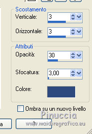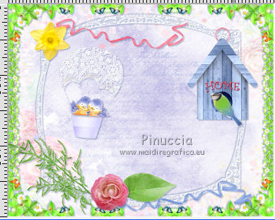 qui puoi trovare qualche risposta ai tuoi dubbi. Se l'argomento che ti interessa non è presente, ti prego di segnalarmelo. Questo tutorial è una creazione di ©Titoune e non può essere copiato su altri siti nè essere offerto per il download. Lo stesso vale per la mia traduzione. Il tutorial è stato creato con Corel17, ma può essere eseguito anche con le altre versioni di PSP. Secondo la versione utilizzata (anteriore a PSP X) potresti ottenere dei risultati differenti. Dalla versione X4, il comando Immagine>Rifletti è stato sostituito con Immagine>Capovolgi in orizzontale, e il comando Immagine>Capovolgi con Immagine>Capovolgi in verticale. Nelle versioni X5 e X6, le funzioni sono state migliorate rendendo disponibile il menu Oggetti. Con il nuovo X7 sono tornati i comandi Rifletti/Capovolgi, ma con nuove differenze. Vedi la scheda sull'argomento qui Per tradurre il tutorial ho usato PSP X. Occorrente: Un tube a scelta. Il resto del materiale qui Il tube usato è di Elizabeth. Filtri: in caso di dubbi, ricorda di consultare la mia sezione filtri qui Filters Unlimited 2.0 qui Penta.com - Color Dot qui I filtri Penta.com si possono usare da soli o importati in Filters Unlimited (come fare vedi qui) Se un filtro fornito appare con questa icona ![]() 1. Apri una nuova immagine trasparente 750 x 600 Pixels. Selezione>Seleziona tutto. 2. Apri l'elemento CD_HopIntoSpring_paper 2 e vai a Modifica>Copia. Torna al tuo lavoro e vai a Modifica>Incolla nella selezione. Selezione>Deseleziona. 3. Apri l'elemento Frame e vai a Modifica>Copia. Torna al tuo lavoro e vai a Modifica>Incolla come nuovo livello. Non spostarlo. 4. Effetti>Effetti 3D>Sfalsa ombra, colore #2e497d. ![]() Ripeti l'Effetto Sfalsa ombra, ma verticale e orizzontale -3. 5. Apri l'elemento CD_HopIntoSpring_word art overlay e vai a Modifica>Copia. Torna al tuo lavoro e vai a Modifica>Incolla come nuovo livello. Non spostarlo. Porta questo livello sotto il livello della cornice. 6. Apri l'elemento border e vai a Modifica>Copia. Torna al tuo lavoro e vai a Modifica>Incolla come nuovo livello. 7. Porta questo livello sopra il livello inferiore. Effetti>Effetti 3D>Sfalsa ombra, con i settaggi precedenti. 8. Attiva il livello superiore. Apri l'elemento CD_HopIntoSpring_ribbon_blue e vai a Modifica>Copia. Torna al tuo lavoro e vai a Modifica>Incolla come nuovo livello. Spostalo nella parte inferiore della cornice.Vedi l'esempio finale. Effetti>Effetti 3D>Sfalsa ombra, colore #2e497d. ![]() 9. Apri l'elemento CD_HopIntoSpring_leave 2 e vai a Modifica>Copia. Torna al tuo lavoro e vai a Modifica>Incolla come nuovo livello. Spostalo nella parte inferiore sinistra della cornice.Vedi l'esempio finale. Effetti>Effetti 3D>Sfalsa ombra, con i settaggi precedenti. 10. Apri l'elemento CD_HopIntoSpring_leave e vai a Modifica>Copia. Torna al tuo lavoro e vai a Modifica>Incolla come nuovo livello. Spostalo nella parte inferiore della cornice.Vedi l'esempio finale. Effetti>Effetti 3D>Sfalsa ombra, con i settaggi precedenti. 11. Apri l'elemento CD_HopIntoSpring_flower 1 e vai a Modifica>Copia. Torna al tuo lavoro e vai a Modifica>Incolla come nuovo livello. Spostalo nella parte inferiore della cornice.![]() Effetti>Effetti 3D>Sfalsa ombra, con i settaggi precedenti. 12. Apri l'elemento CD_HopIntoSpring_birdhouse e vai a Modifica>Copia. Torna al tuo lavoro e vai a Modifica>Incolla come nuovo livello. Spostalo nella parte superiore destra della cornice.Vedi l'esempio finale. Effetti>Effetti 3D>Sfalsa ombra, con i settaggi precedenti. 13. Apri l'elemento CD_HopIntoSpring_bird e vai a Modifica>Copia. Torna al tuo lavoro e vai a Modifica>Incolla come nuovo livello. Spostalo a destra.Vedi l'esempio finale. Effetti>Effetti 3D>Sfalsa ombra, con i settaggi precedenti. 14. Apri l'elemento CD_HopIntoSpring_ribbon e vai a Modifica>Copia. Torna al tuo lavoro e vai a Modifica>Incolla come nuovo livello. Spostalo in alto a sinistra.Vedi l'esempio finale. Effetti>Effetti 3D>Sfalsa ombra, con i settaggi precedenti. 15. Apri l'elemento CD_HopIntoSpring_flower 2 e vai a Modifica>Copia. Torna al tuo lavoro e vai a Modifica>Incolla come nuovo livello. Spostalo in alto a sinistra.Vedi l'esempio finale. Effetti>Effetti 3D>Sfalsa ombra, con i settaggi precedenti. 16. Apri l'elemento CD_HopIntoSpring_balloon e vai a Modifica>Copia. Torna al tuo lavoro e vai a Modifica>Incolla come nuovo livello. Spostalo nella parte sinistra del paesaggio.Vedi l'esempio finale. Effetti>Effetti 3D>Sfalsa ombra, con i settaggi precedenti. 17. Apri l'elemento cute_birds e vai a Modifica>Copia. Torna al tuo lavoro e vai a Modifica>Incolla come nuovo livello. Spostalo nella navicella.![]() Porta questo livello sotto il livello dei palloni. Effetti>Effetti 3D>Sfalsa ombra, con i settaggi precedenti. 18. Apri il tuo tube e vai a Modifica>Copia. Torna al tuo lavoro e vai a Modifica>Incolla come nuovo livello. Immagine>Ridimensiona, se e quanto necessario, tutti i livelli non selezionato. Spostalo dove preferisci o vedi il mio esempio.Effetti>Effetti 3D>Sfalsa ombra, con i settaggi precedenti. 19. Attiva il livello superiore. Livelli>Nuovo livello raster. Selezione>Seleziona tutto. 20. Apri l'elemento CD_HopIntoSpring__paper 2 e vai a Modifica>Copia. Torna al tuo lavoro e vai a Modifica>Incolla nella selezione. 21. Selezione>Modifica>Contrai - 3 pixels. Premi sulla tastiera il tasto CANC .Selezione>Deseleziona. 22. Attiva il livello inferiore. Modifica>Copia. Selezione>Seleziona tutto. Immagine>Ritaglia la selezione. 23. Immagine>Dimensioni tela - 800 x 650 pixels. ![]() 24. Livelli>Nuovo livello raster. Livelli>Disponi>Sposta giù. Selezione>Seleziona tutto. Modifica>Incolla nella selezione. Selezione>Modifica>Contrai - 25 pixels. Selezione>Inverti. Selezione>Innalza selezione a livello. 25. Effetti>Effetti 3D>Smusso a incasso. ![]() Selezione>Deseleziona. Effetti>Effetti 3D>Sfalsa ombra, con i settaggi precedenti. Firma il tuo lavoro. Livelli>Unisci>Unisci tutto e salva in formato jpg. ![]() Se hai 
