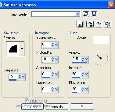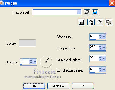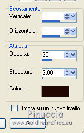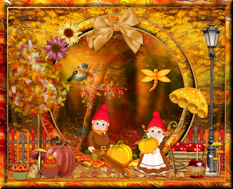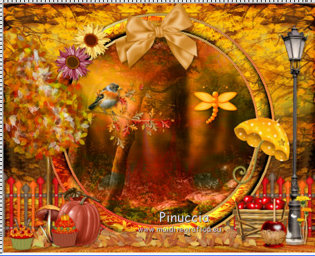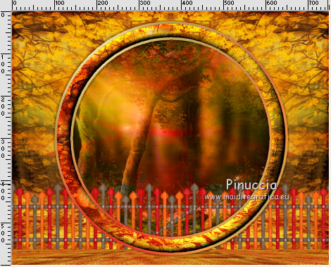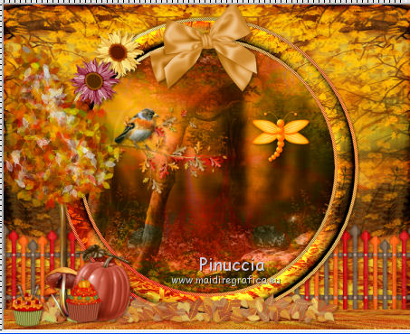 qui puoi trovare qualche risposta ai tuoi dubbi. Se l'argomento che ti interessa non è presente, ti prego di segnalarmelo. Questo tutorial è una creazione di ©Titoune e non può essere copiato su altri siti nè essere offerto per il download. Lo stesso vale per la mia traduzione. Il tutorial è stato creato con Corel17, ma può essere eseguito anche con le altre versioni di PSP. Secondo la versione utilizzata (anteriore a PSP X) potresti ottenere dei risultati differenti. Dalla versione X4, il comando Immagine>Rifletti è stato sostituito con Immagine>Capovolgi in orizzontale, e il comando Immagine>Capovolgi con Immagine>Capovolgi in verticale. Nelle versioni X5 e X6, le funzioni sono state migliorate rendendo disponibile il menu Oggetti. Con il nuovo X7 sono tornati i comandi Rifletti/Capovolgi, ma con nuove differenze. Vedi la scheda sull'argomento qui Per tradurre il tutorial ho usato PSP X. Occorrente: Un tube a scelta. Il resto del materiale qui Filtri in caso di dubbi, ricorda di consultare la mia sezione filtri qui Filters Unlimited 2.0 qui Penta.com - Jeans qui I filtri Penta.com si possono usare da soli o importati in Filters Unlimited (come fare vedi qui) Se un filtro fornito appare con questa icona ![]() Metti la selezione nella cartella Selezioni. 1. Apri una nuova immagine trasparente 750 x 600 pixels. 2. Selezione>Carica/Salva selezione>Carica selezione da disco. Cerca e carica la selezione "selection_scrap_tendre_saison". ![]() Apri l'elemento sd-paper5, e vai a Modifica>Copia. Torna al tuo lavoro e vai a Modifica>Incolla nella selezione. 3. Selezione>modifica>Contrai - 6 pixels. Livelli>Nuovo livello raster. 4. Apri l'elemento sd-paper3, e vai a Modifica>Copia. Torna al tuo lavoro e vai a Modifica>Incolla nella selezione. 5. Effetti>Effetti 3D>Smusso a incasso. ![]() Selezione>inverti. 6. Attiva il livello inferiore. Effetti>Plugins>Penta.com - Jeans, con i settaggi standard. ![]() Selezione>Deseleziona. 7. Attiva il livello superiore. Livelli>Unisci>Unisci giù. 8. Immagine>Ridimensiona, al 95%, tutti i livelli non selezionato. Regola>Messa a fuoco>Metti a fuoco. 9. Livelli>Nuovo livello raster. Livelli>Disponi>Sposta giù. Selezione>Seleziona tutto. 10. Modifica>Incolla nella selezione (l'elemento sd-paper3 è ancora in memoria). Selezione>Deseleziona. 11. Immagine>Rifletti. Effetti>Effetti di riflesso>Specchio rotante. ![]() 12. Attiva il livello della cornice. Attiva lo strumento Bacchetta magica ![]() e clicca al centro della cornice per selezionarla. Selezione>Modifica>Espandi - 3 pixels. 13. Livelli>Nuovo livello raster. Livelli>Disponi>Sposta giù. 14. Apri l'elemento sd-paper4, e vai a Modifica>Copia. Torna al tuo lavoro e vai a Modifica>Incolla nella selezione. Selezione>Deseleziona. Immagine>Rifletti. Cambia la modalità di miscelatura di questo livello in Luminanza (esistente). Livelli>Duplica. Cambia la modalità di miscelatura di questo livello in Filtra. per il mio esempio non ho duplicato il livello 15. Attiva nuovamente il livello della cornice. Effetti>Effetti 3D>Sfalsa ombra, colore #230903. ![]() Ripeti l'Effetto Sfalsa ombra, cambiando verticale e orizzontale con -3. 16. Apri l'elemento leaves_floor, e vai a Modifica>Copia. Torna al tuo lavoro e vai a Modifica>Incolla come nuovo livello. Spostalo nella parte inferiore.Vedi l'esempio finale. Porta questo livello sotto il livello della cornice. Rimani su questo livello. 17. Apri l'elemento sd-element21, e vai a Modifica>Copia. Torna al tuo lavoro e vai a Modifica>Incolla come nuovo livello. Posiziona l'elemento come nell'esempio.![]() 18. Attiva nuovamente il livello della cornice. Attiva lo strumento Bacchetta magica ![]() e clicca al centro della cornice per selezionarla. Selezione>Modifica>Espandi - 6 pixels. 19. Attiva il livello dello steccato. Premi sulla tastiera il tasto CANC ![]() Selezione>Deseleziona. Effetti>Effetti 3D>Sfalsa ombra, colore #230903. ![]() 20. Apri l'elemento leaves_border, e vai a Modifica>Copia. Torna al tuo lavoro e vai a Modifica>Incolla come nuovo livello. Spostalo sotto la cornice.Vedi l'esempio finale. Effetti>Effetti 3D>Sfalsa ombra, con i settaggi precedenti. 21. Apri l'elemento sd-element 15, e vai a Modifica>Copia. Torna al tuo lavoro e vai a Modifica>Incolla come nuovo livello. Spostalo nella parte sinistra della cornice.Vedi l'esempio finale. Effetti>Effetti 3D>Sfalsa ombra, con i settaggi precedenti. Porta questo livello sotto il livello della cornice. 22. Apri l'elemento sd-element 13, e vai a Modifica>Copia. Torna al tuo lavoro e vai a Modifica>Incolla come nuovo livello. Spostalo nella parte sinistra della cornice.Vedi l'esempio finale. Effetti>Effetti 3D>Sfalsa ombra, con i settaggi precedenti. 23. Attiva nuovamente il livello superiore. Apri l'elemento sd-element 12, e vai a Modifica>Copia. Torna al tuo lavoro e vai a Modifica>Incolla come nuovo livello. Spostalo nella parte sinistra.Vedi l'esempio finale. Effetti>Effetti 3D>Sfalsa ombra, con i settaggi precedenti. 24. Apri l'elemento sd-element26, e vai a Modifica>Copia. Torna al tuo lavoro e vai a Modifica>Incolla come nuovo livello. Spostalo nella parte sinistra.Vedi l'esempio finale. Effetti>Effetti 3D>Sfalsa ombra, con i settaggi precedenti. 25. Apri l'elemento sd-element 3, e vai a Modifica>Copia. Torna al tuo lavoro e vai a Modifica>Incolla come nuovo livello. Spostalo nella parte sinistra.Vedi l'esempio finale. Effetti>Effetti 3D>Sfalsa ombra, con i settaggi precedenti. 26. Apri l'elemento sd-element 27, e vai a Modifica>Copia. Torna al tuo lavoro e vai a Modifica>Incolla come nuovo livello. Spostalo nella parte sinistra.Vedi l'esempio finale. Effetti>Effetti 3D>Sfalsa ombra, con i settaggi precedenti. 27. Apri l'elemento sd-element 28, e vai a Modifica>Copia. Torna al tuo lavoro e vai a Modifica>Incolla come nuovo livello. Spostalo nella parte sinistra.![]() Effetti>Effetti 3D>Sfalsa ombra, con i settaggi precedenti. 28. Apri l'elemento sd-element 22, e vai a Modifica>Copia. Torna al tuo lavoro e
