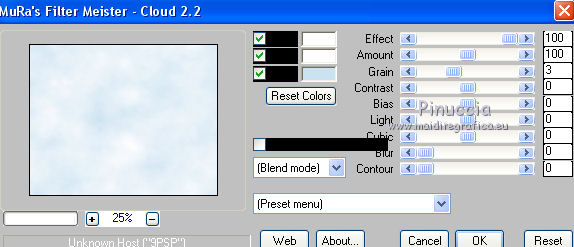 Premere successivamente il tasto Reset serve per cambiare casualmente (ragione per la quale il tuo risultato non potrà essere uguale al mio esempio), l'aspetto delle nuvole.
