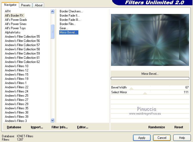 Effetti>Plugins>Filters Unlimited 2.0 - Alf's Border FX - Mirror Bevel.