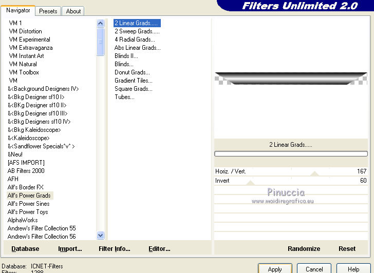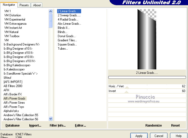 Effetti>Plugins>Filters Unlimited 2.0 - Alf's Power Grads - 2 Linear Grads