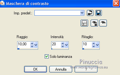 Regola>Messa a fuoco>Maschera di contrasto.