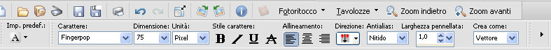 Attiva lo strumento Testo font Fingerpop, dimensioni 75,