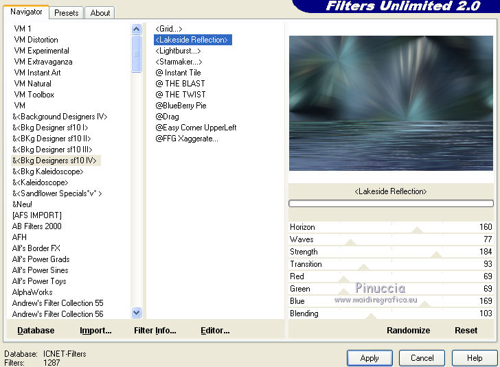 Effetti>Plugins>Filters Unlimited 2.0 - &<Background Designers IV> - @Lakeside Reflection MMMM.