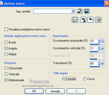 Effetti>Effetti di immagine>Motivo unico, con i settaggi standard.