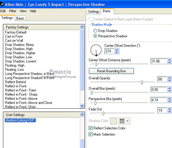 Effetti>Plugins>Alien Skin Eye Candy 5 Impact - Perspective Shadow,
