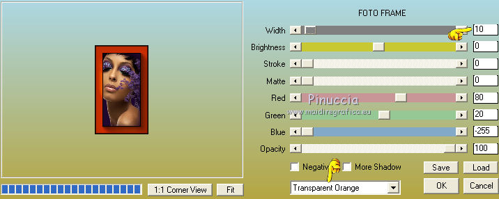 Prima seleziona il preset Transparent Orange e poi cambia width con 10.