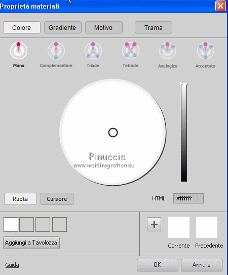 Clicca su Colore e scrivi il codice nella casella html (in questo caso è la paletta del colore di sfondo).