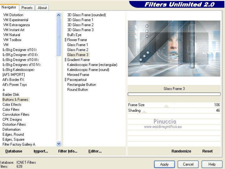 Effetti>Plugins>Filters Unlimited 2.0 - Buttons &Frames - Glass Frame 3.