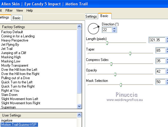 Effetti>Plugins>Alien Skin Eye Candy 5 Impact - Motion Trail.