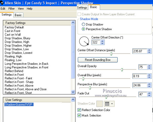 Effetti>Plugins>Alien Skin Eye Candy 5 Impact - Perspective Shadow.
