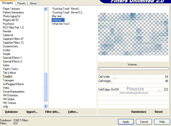 Effetti>Plugins>Filters Unlimited 2.0 - Toadies - Weaver.