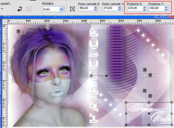 e imposta Posizione X: 639,00 e Posizione Y: 418,00