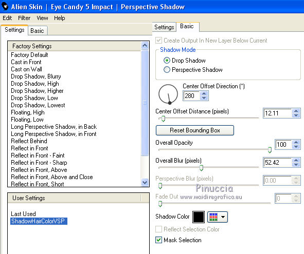 Effetti>Plugins>Alien Skin Eye Candy 5 Impact - Perspective Shadow.