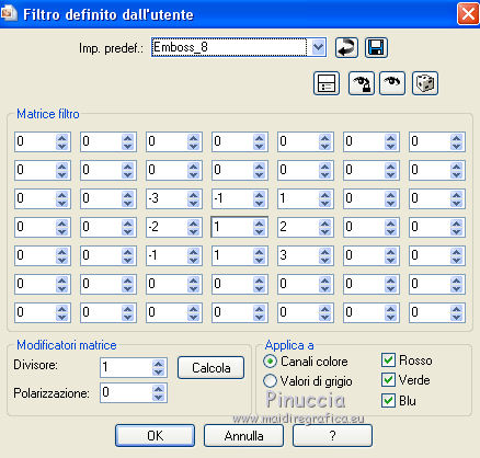 Effetti>Filtro definito dall'utente, seleziona il preset Emboss_8 e ok.