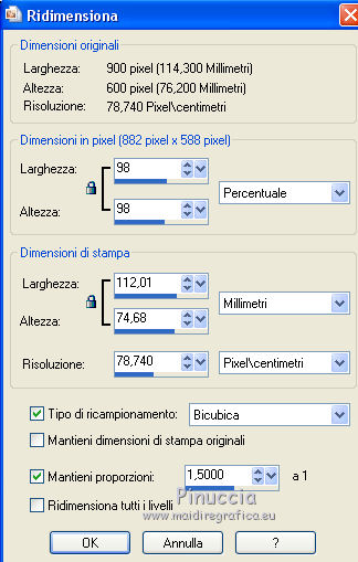 Immagine>Ridimensiona, al 98%, tutti i livelli non selezionato.