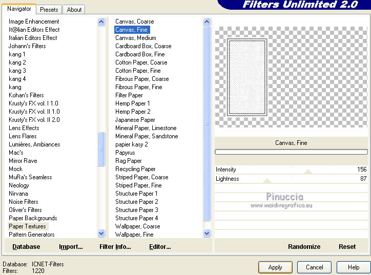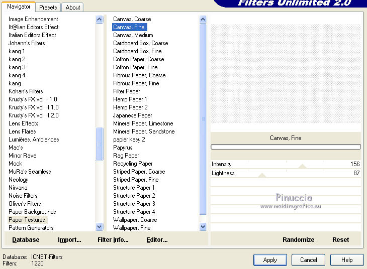 Effetti>Plugins>Filters Unlimited 2.0 - Paper textures - Canvas,Fine.