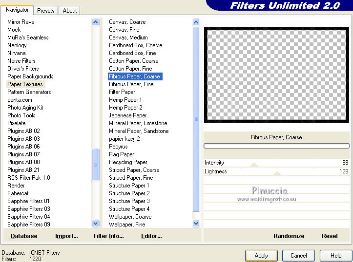 Effetti>Plugins>Filters Unlimited 2.0 - Paper textures - Fibrous Paper,Coarse.