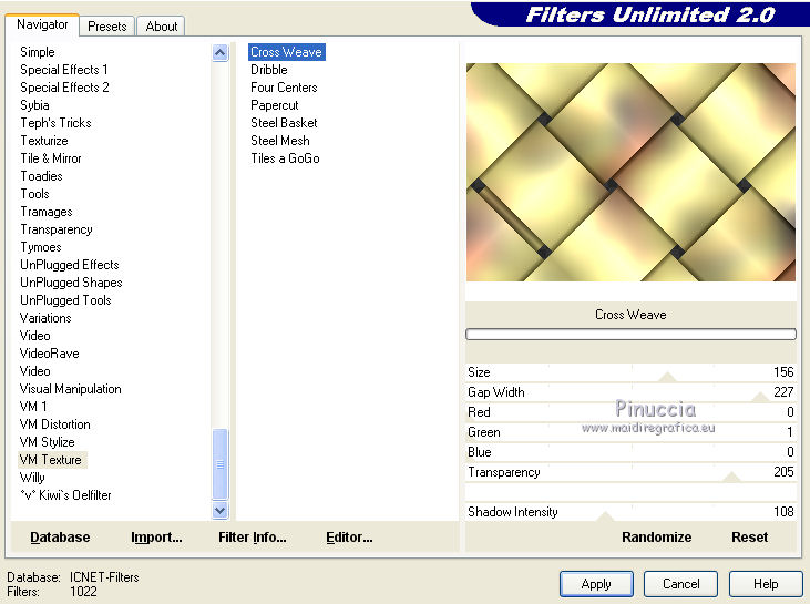 2. Effetti>Plugins>Filters Unlimited 2.0 - VM Texture - Cross Weave.