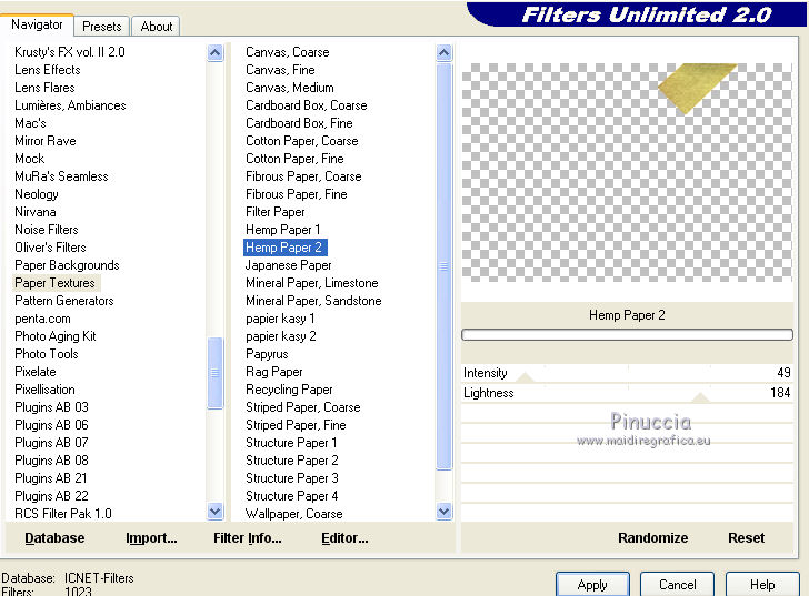 Effets, modules externes, Filters Unlimited 2.0, Paper Textures, Hemp Paper 2.