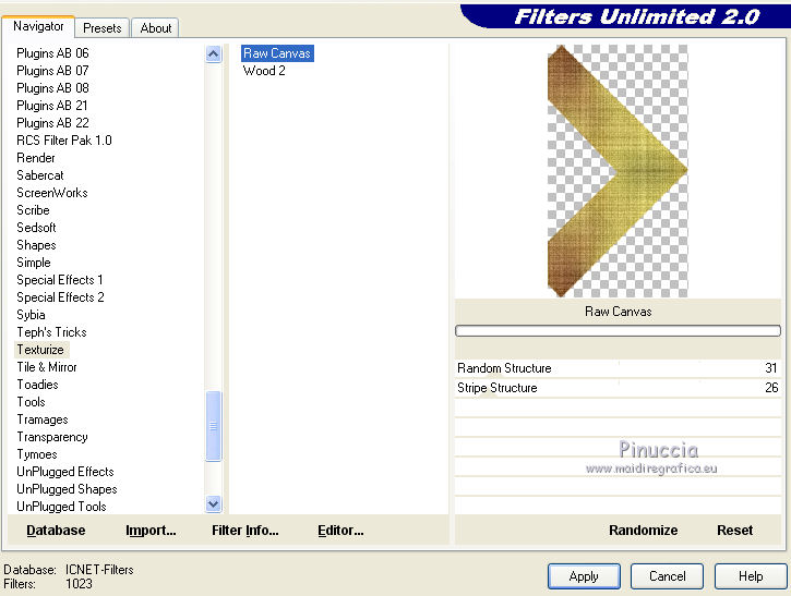 Effetti>Plugins>Filters Unlimited 2.0 - Texturize - Raw Canvas.