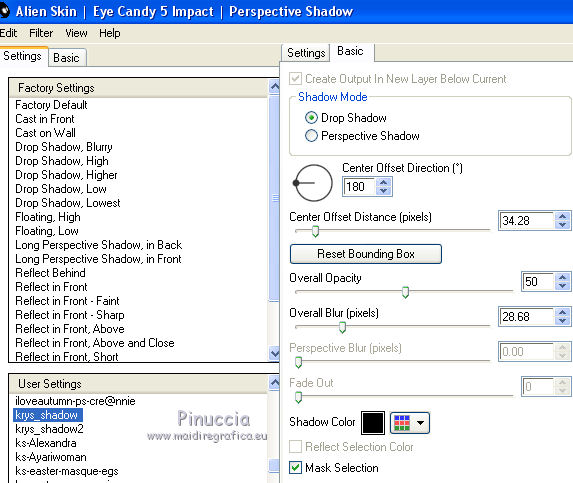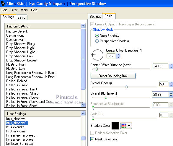 Effetti>Plugins>Alien skin Eye Candy 5 impact - Perspective Shadow.