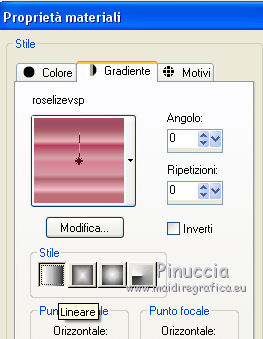 Passa il colore di primo piano a Gradiente, e seleziona il gradiente roselizevsp, stile Lineare.