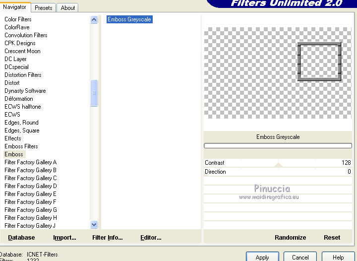 Effetti>Plugins>Filters Unlimited 2.0 - Emboss - Emboss Greyscale.