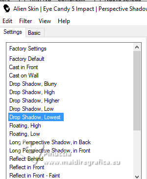 Effetti>Plugins>Alien Skin Eye Candy 5 Impact - Perspective Shadow.