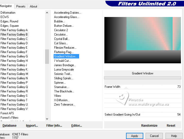 Effetti>Plugins>Filters Unlimited 2.0 - Filter Factory Gallery B - Gradient Window.