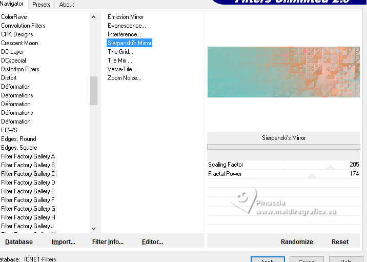 Effetti>Plugins>Filters Unlimited 2.0 - Filter Factory Gallery C - Sierpenski's Mirror.