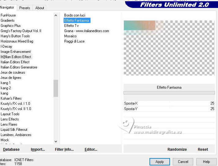 3. Effetti>Plugins>Filters Unlimited 2.0 - It@lian Editors Effect - Effetto Fantasma.