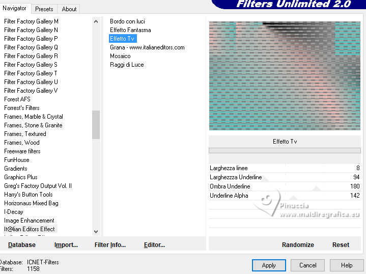 Effetti>Plugins>Filters Unlimited 2.0 - It@lian Editors Effect - Effetto Tv.