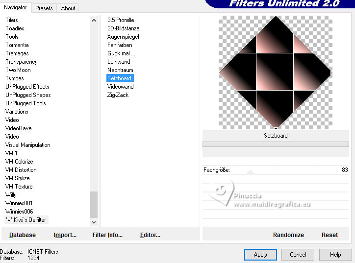 Effetti>Plugins>Filters Unlimited 2.0 - °v° Kiwi's Oelfilter - Setzboard