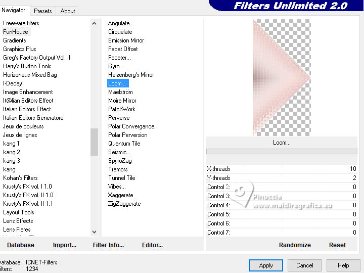 Effetti>Plugins>Filters Unlimited 2.0 - FunHouse - Loom, con i settaggi standard