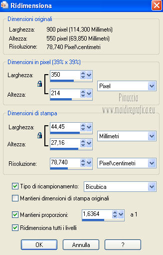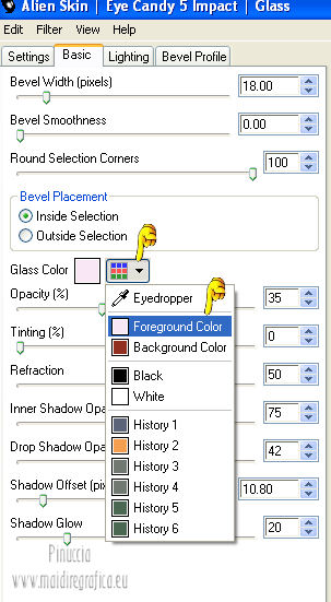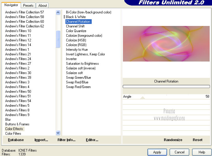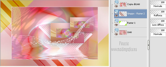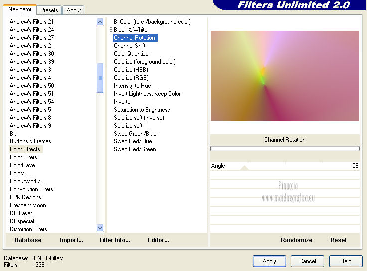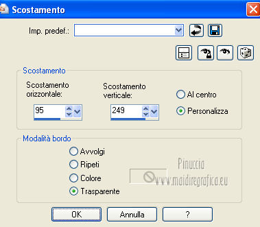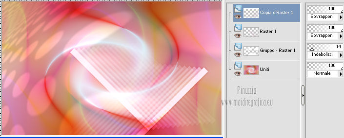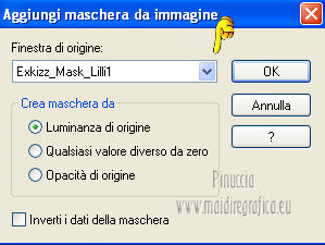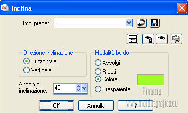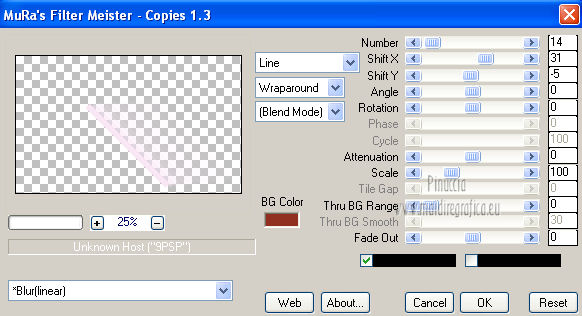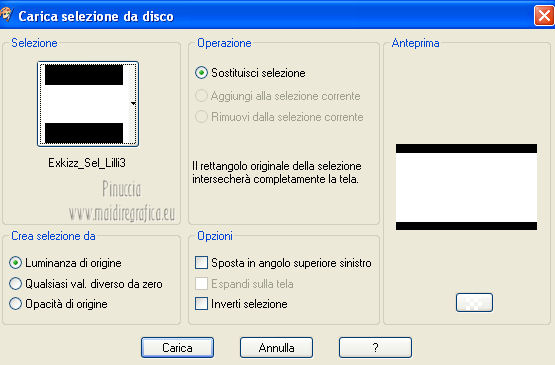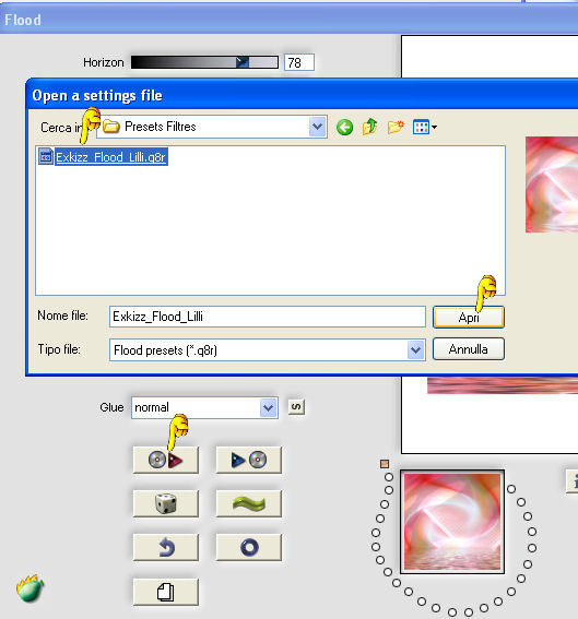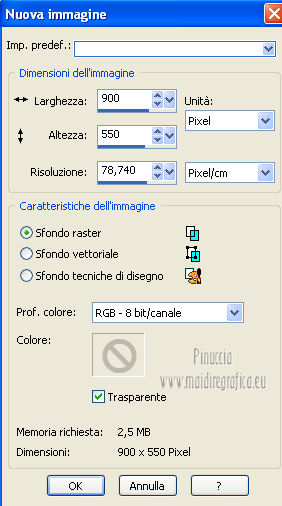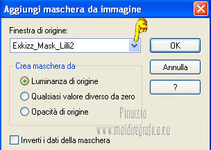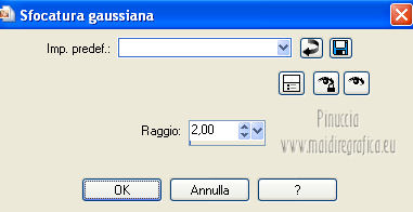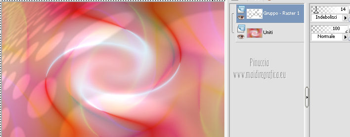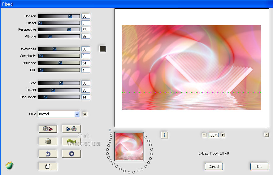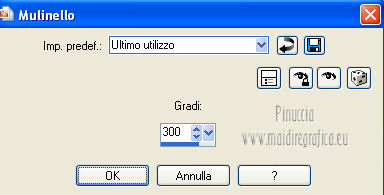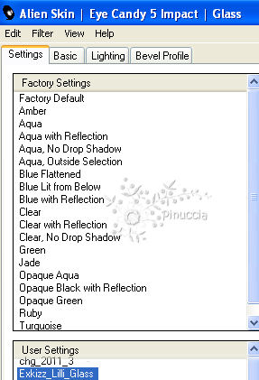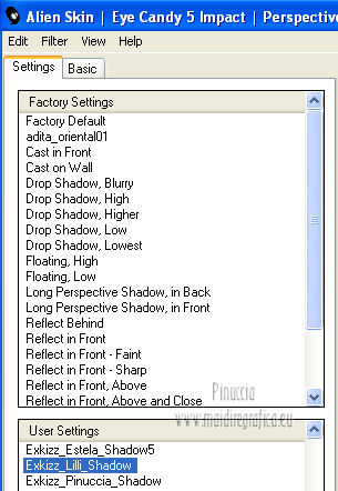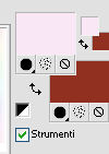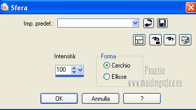 qui puoi trovare qualche risposta ai tuoi dubbi. Se l'argomento che ti interessa non è presente, ti prego di segnalarmelo. Questo tutorial è stato creato con PSP X2, ma può essere eseguito anche con le altre versioni di PSP. Per tradurlo, ho usato PSP X. Questo tutorial è una creazione di ©Exkizz Eskiss e non può essere copiato su altri siti nè essere offerto per il download. Lo stesso vale per la mia traduzione. Il materiale viene da vari gruppi di condivisione. Il copyright appartiene ai rispettivi autori. Grazie ai creatori dei tubes che mettono a disposizione il loro lavoro in vari gruppi di condivisione. Rispetta il lavoro degli autori, non cambiare il nome del file e non cancellare il watermark. Occorrente: Materiale qui Il tube della donna è di Maryse Grazie Maryse per l'autorizzazione ad usare questo bel tube. E' vietato modificare, rinominare o togliere il watermark dai tubes. in caso di dubbi, ricorda di consultare la mia sezione filtri qui Filters Unlimited 2.0 qui Andrew's Filter 3 - Folding a Tea Cloth qui AAA Filters - AAA Framer qui Mura's Meister - Copies qui Flaming Pear - Flood qui Alien Skin Eye Candy 5 Impact - Glass, Perspective Shadow qui I filtri Andrew's per essere usati devono prima essere convertiti. Come fare vedi qui Si usano importandoli in Filters Unlimited (come fare vedi qui) ma possono funzionare anche da soli. La raccolta fornita è stata già convertita. ![]() Metti i preset nelle rispettive cartelle del filtro Alien Skin Eye Candy 5 Impact>Settings>Shadow/Glass. Cliccando sul file una o due volte (a seconda delle tue impostazioni), automaticamente il preset si installerà nella cartella corretta. perchè uno o due clic vedi qui Metti il preset per Flood in una cartella a tua scelta. Lo importerai da questa cartella, quando ti servirà. Metti il pennello nella cartella Pennelli. Attenzione, il pennello è composto da due files che non devono essere separati. Vedi gli appunti sui Pennelli qui Il terzo file che trovi nella cartella è il testo in formato png che, se preferisci, puoi usare al posto del pennello. Metti le selezioni nella cartella Selezioni. Apri le maschere in PSP e minimizzale con il resto del materiale. Colori utilizzati Apri la paletta "Exkizz_Palette_lilli" in PSP. Attiva lo strumento Contagocce ![]() e clicca con il tasto sinistro del mouse per impostare il colore di primo piano, e con il tasto destro per impostare il colore di sfondo. (Nota: Nel materiale trovi una paletta Template, nel caso volessi usare altri colori. Seleziona ogni casella con la bacchetta magica , modalità Sostituisci, corrispondenza Valore RGB, sfumatura e tolleranza0),e riempi la casella con i tuoi colori).***** Scegli tre colori, uno scuro, uno chiaro e un colore vivo in armonia con il tuo tube. Questa la mia paletta dei colori. ![]() ***** Passo 1. 1. Apri la paletta "Exkizz_Palette_lilli". Strumento Contagocce (E) ![]() Clicca con il tasto sinistro del mouse sul colore chiaro #f9e7f5 ![]() per impostarlo come colore di primo piano. Clicca con il tasto destro del mouse sul colore scuro #913021 ![]() per impostarlo come colore di sfondo. ![]() Passo 2 Passa il colore di primo piano a Gradiente, stile Radiale, con i seguenti settaggi. ![]() Passo 3 1. Apri una nuova immagine trasparente 900 x 550 pixels. ![]() Riempi l'immagine trasparente con il gradiente radiale.3. Livelli>Duplica - Copia di Raster 1. 4. Effetti>Plugins>Filters Unlimited 2.0 - Color Effects - Channel Rotation, con i settaggi standard. ![]() 5. Cambia la modalità di miscelatura di questo livello in Luce diffusa. 6. Livelli>Unisci>Unisci visibile. 7. Regola>Sfocatura>Sfocatura radiale. ![]() Passo 4 1. Apri il tube "Exkizz_Lilli_Deco 1" e vai a Modifica>Copia. Torna al tuo lavoro e vai a Modifica>Incolla come nuovo livello - Raster 1. Non spostarlo. Il tube è già correttamente posizionato e in modalità di miscelatura Luce diffusa. ![]() Passo 5 1. Livelli>Nuovo livello raster - Raster 2. 2. Selezione>Carica/Salva selezione>Carica selezione da disco. Cerca e carica la selezione Exkizz_Sel_Lilli1. ![]() 3. Riempi la selezione con il gradiente.Mantieni selezionato. 4. Effetti>Plugins>Andrew's Filters 3 - Folding a Tea Cloth, con i settaggi standard. ![]() 5. Effetti>Effetti di distorsione>Mulinello. ![]() 6. Effetti>Plugins>Filters Unlimited 2.0 - Color Effects - Channel Rotation, con i settaggi standard. ![]() Mantieni sempre selezionato. 7. Effetti>Plugins>AAA Filters - AAA Framer. ![]() 8. Selezione>Deseleziona. 9. Livelli>Unisci>Unisci visibile. 10. Effetti>Plugins>AAA Filters - AAA Framer, con i settaggi precedenti. 11. Immagine>Ridimensiona, a 350 pixels di larghezza, tutti i livelli selezionato. ![]() Risultato. ![]() Passo 6 1. Finestra>Duplica (o, sulla tastiera, maiuscola+D) per fare una copia. Metti da parte la copia e continua sul lavoro originale. 2. Effetti>Effetti geometrici>Cerchio. ![]() 3. Effetti>Effetti geometrici>Sfera. ![]() 4. Immagine>Ridimensiona, al 30%, tutti i livelli non selezionato. ![]() 5. Effetti>Plugins>Alien Skin Eye Candy 5 Impact - Glass. Seleziona il preset Exkizz_Lilli_Glass se stai usando altri colori, sotto Basic, imposta il tuo colore chiaro di primo piano. ![]() 6. Regola>Luminosità e contrasto>Luminosità e contrasto. ![]() 7. Livelli>Duplica - Copia di Uniti. Immagine>Ridimensiona, all'80%, tutti i livelli non selezionato. 8. Livelli>Duplica - Copia 2 di Uniti. Immagine>Ridimensiona, al 70%, tutti i livelli non selezionato. Metti da parte questi piccoli bottoni, che userai più tardi. ![]() Passo 7 1. Apri una nuova immagine trasparente 900 x 550 pixels, e riempila con il gradiente radiale.![]() 2. Effetti>Plugins>Andrew's Filters 3 - Folding a Tea Cloth, con i settaggi standard. ![]() 3. Effetti>Effetti di distorsione>Mulinello. ![]() 4. Livelli>Duplica - Copia di Raster 1. 5. Effetti>Plugins>Filters Unlimited 2.0 - Color Effects - Channel Rotation, con i settaggi standard. ![]() 6. Cambia la modalità di miscelatura di questo livello in Lu
